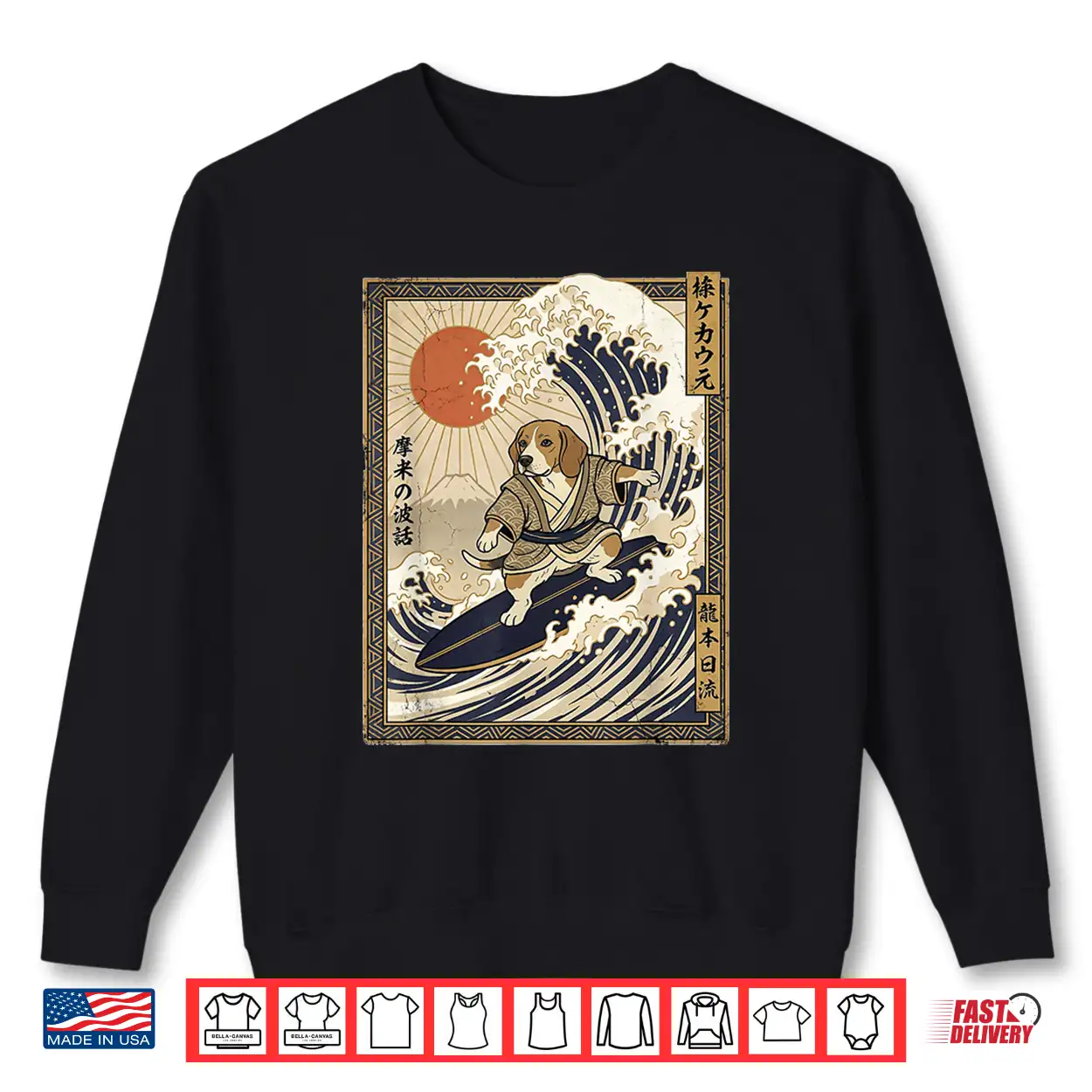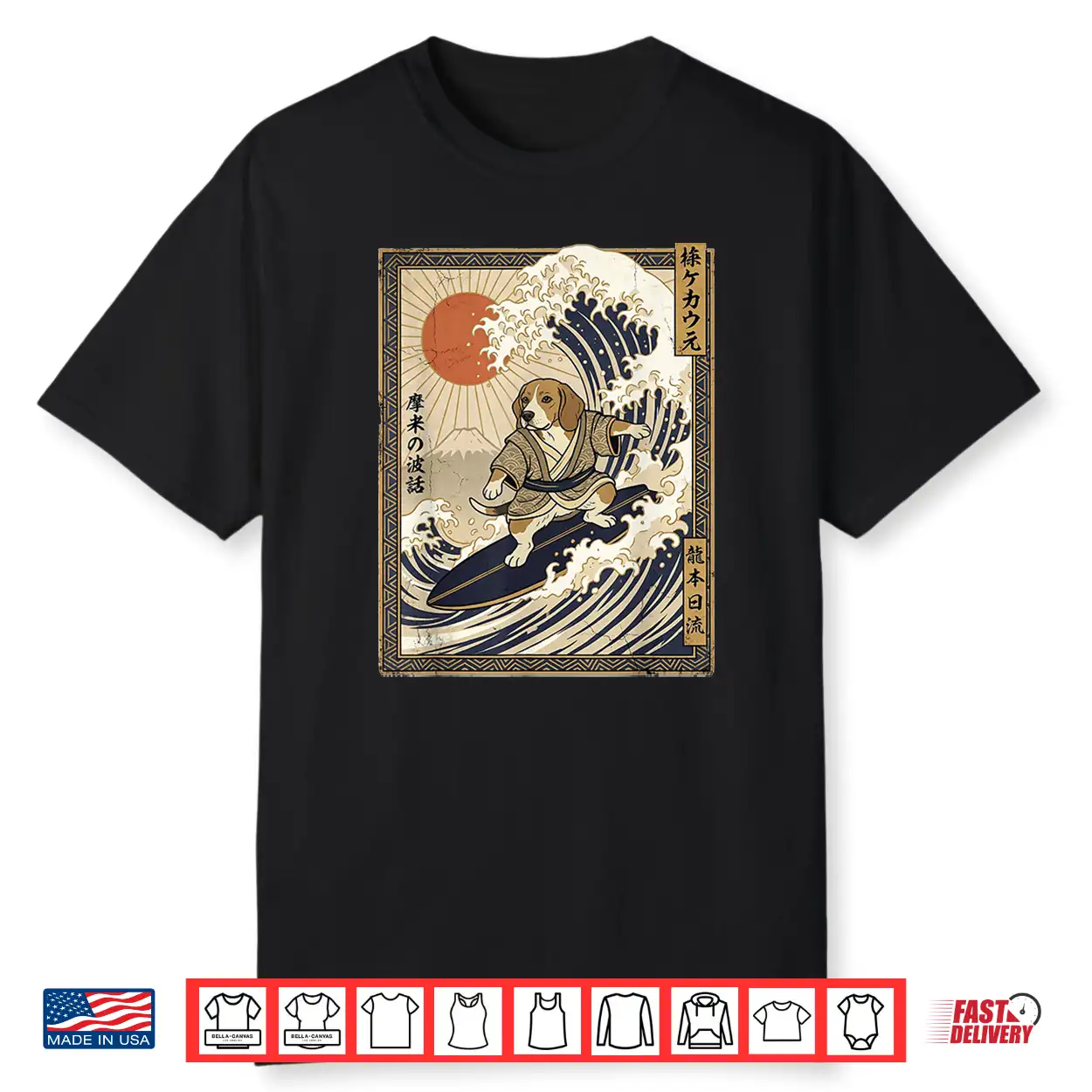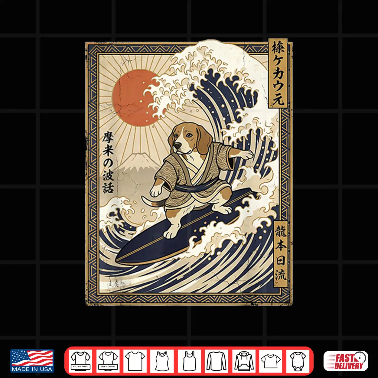 Beagle Japanese Surfing Kanagawa Wave Funny Samurai Dog Shirt