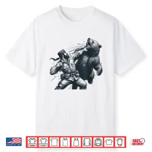 Bear Funny Man Punching Bear Retro Vintage Hunting Camping Shirt