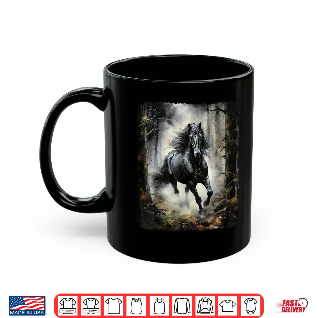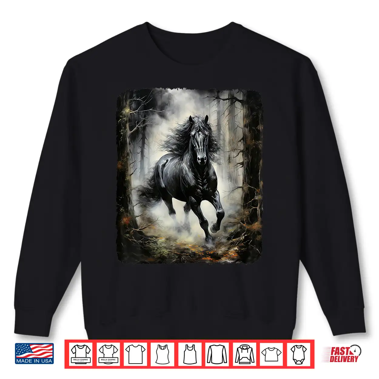 Beautiful Black Horse Running Through The Forest By Night Shirt