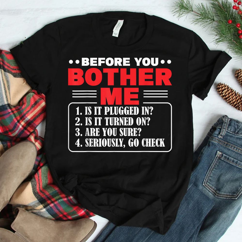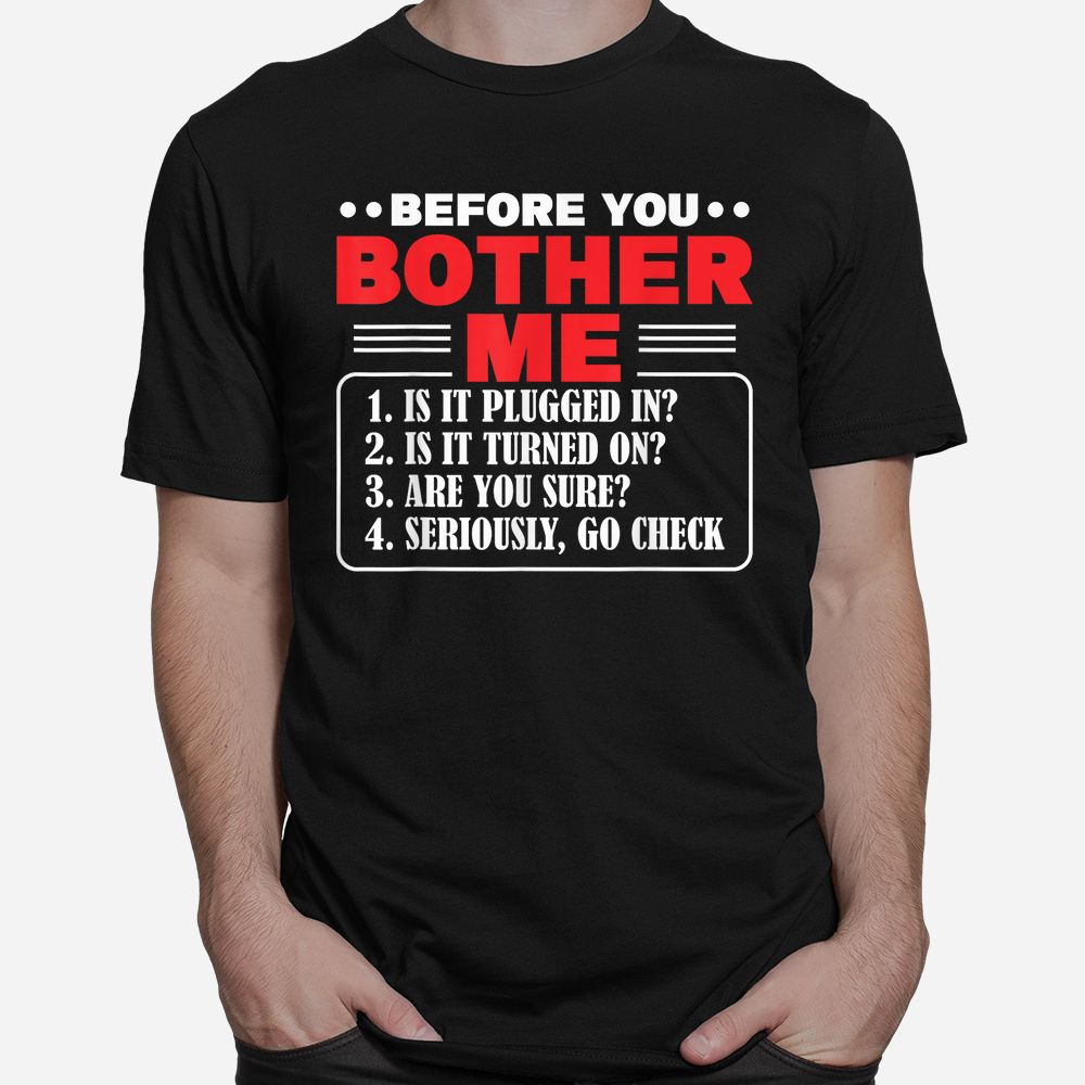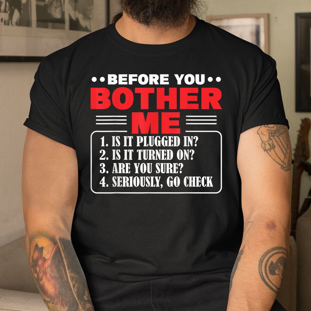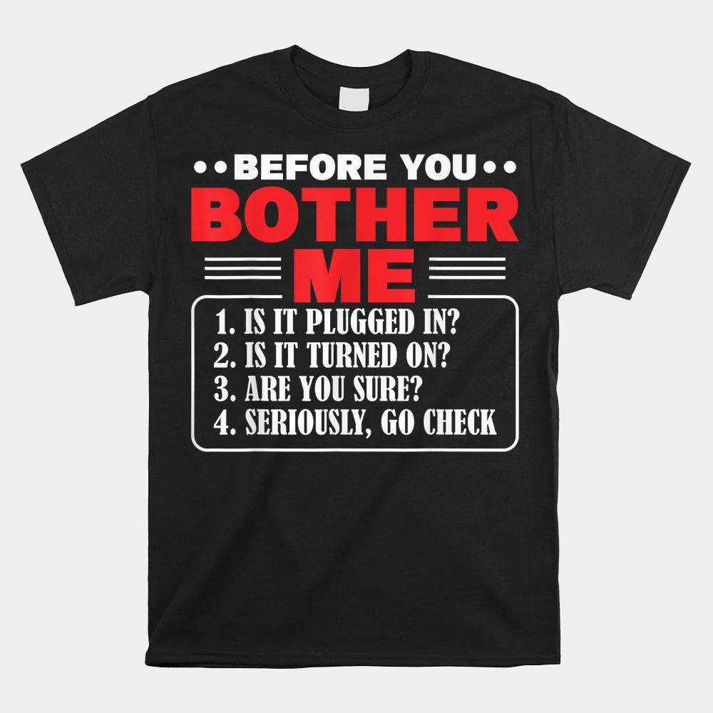 Before You Bother Me Is It Plugged In Computer Techs Shirt
