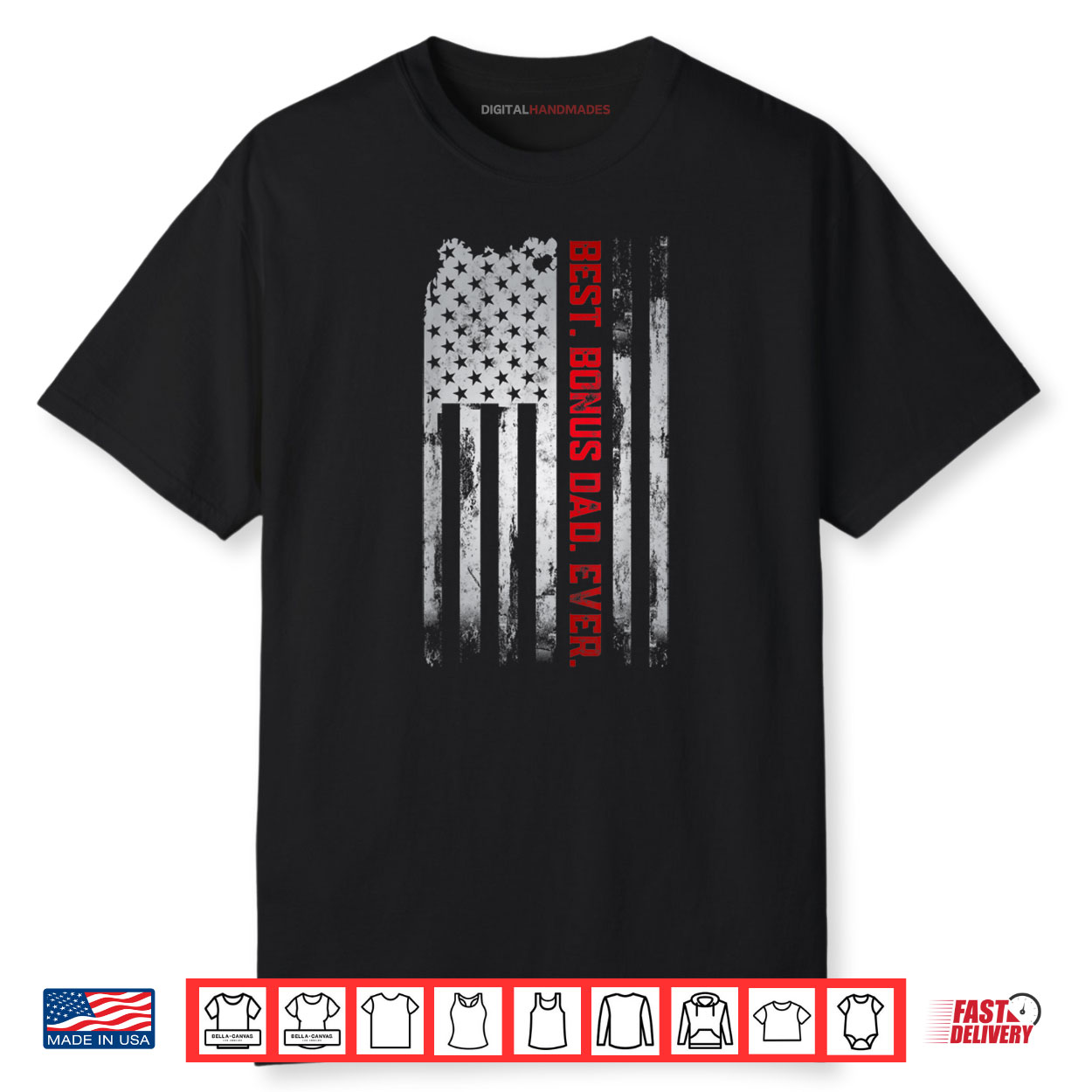 Best Bonus Dad Ever American USA flag Father’s Day Shirt, Best Bonus Dad Ever USA Flag Shirt, American Flag Fathers Day For Stepdad Shirt, Patriotic Stepfather Gift Apparel Shirt, Proud Bonus Dad Of America Style Shirt, Best Stepdad In The USA Ever Shirt, Stars And Stripes For Bonus Dad Shirt, Family Love For Stepfather Gift Shirt, Fourth Of July Bonus Dad Shirt, American Hero Step Dad Shirt