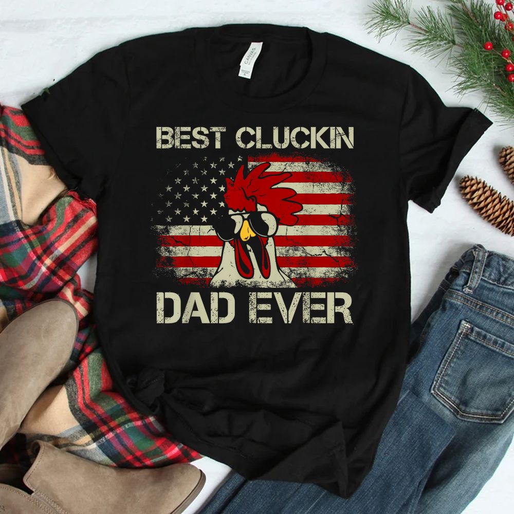 Best Cluckin Dad Ever American Flag Chicken Dad Shirt
