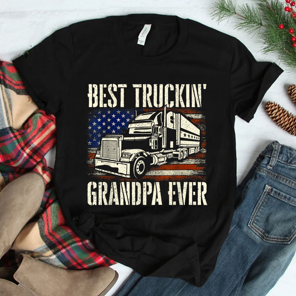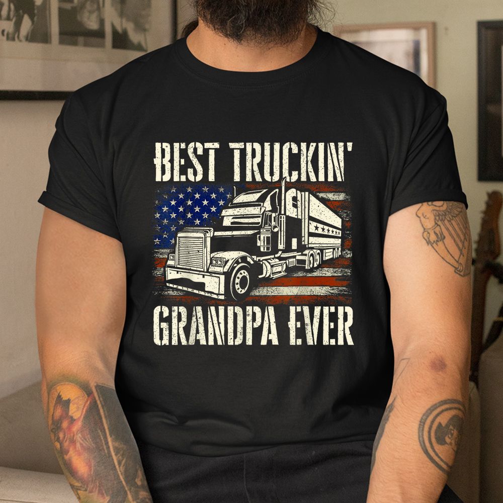 Best Truckin’ Grandpa – Big Rig Semi Truck Driver Trucker Shirt