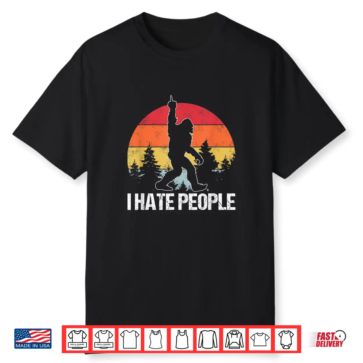 Big Foot I Hate People Middle Finger Sasquatch Retro Funny Shirt