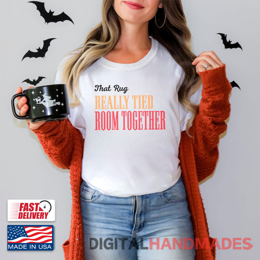 The Big Lebowski That Rug Really Tied The Room Together Shirt is a humorous nod to fans of the movie, symbolizing both The Dude’s laid-back personality and the absurd importance of the rug in the storyline.