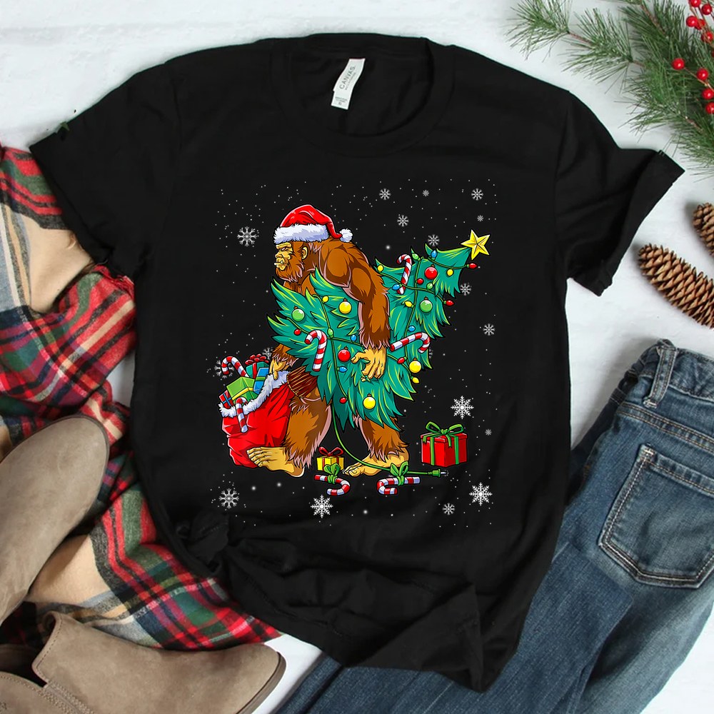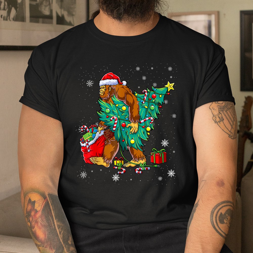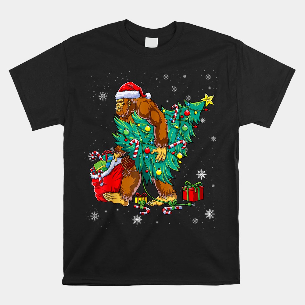 Bigfoot Christmas Shirt Bigfoot Carrying Sasquatch Believer Shirt