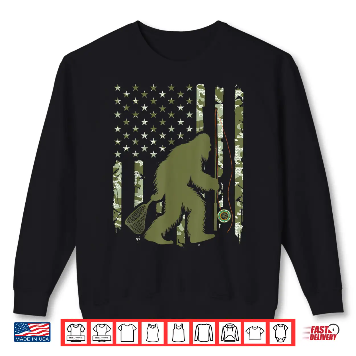 Bigfoot Sasquatch Fly Fishing American Flag Camo Vintage Shirt