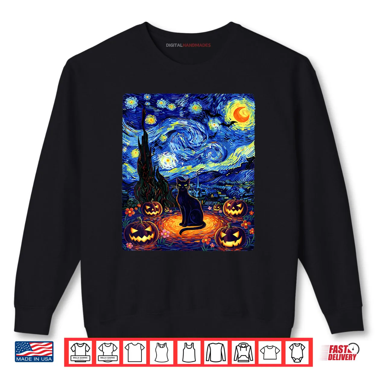 Black Cat Van Gogh Starry Night Cat Costume Halloween Shirt
