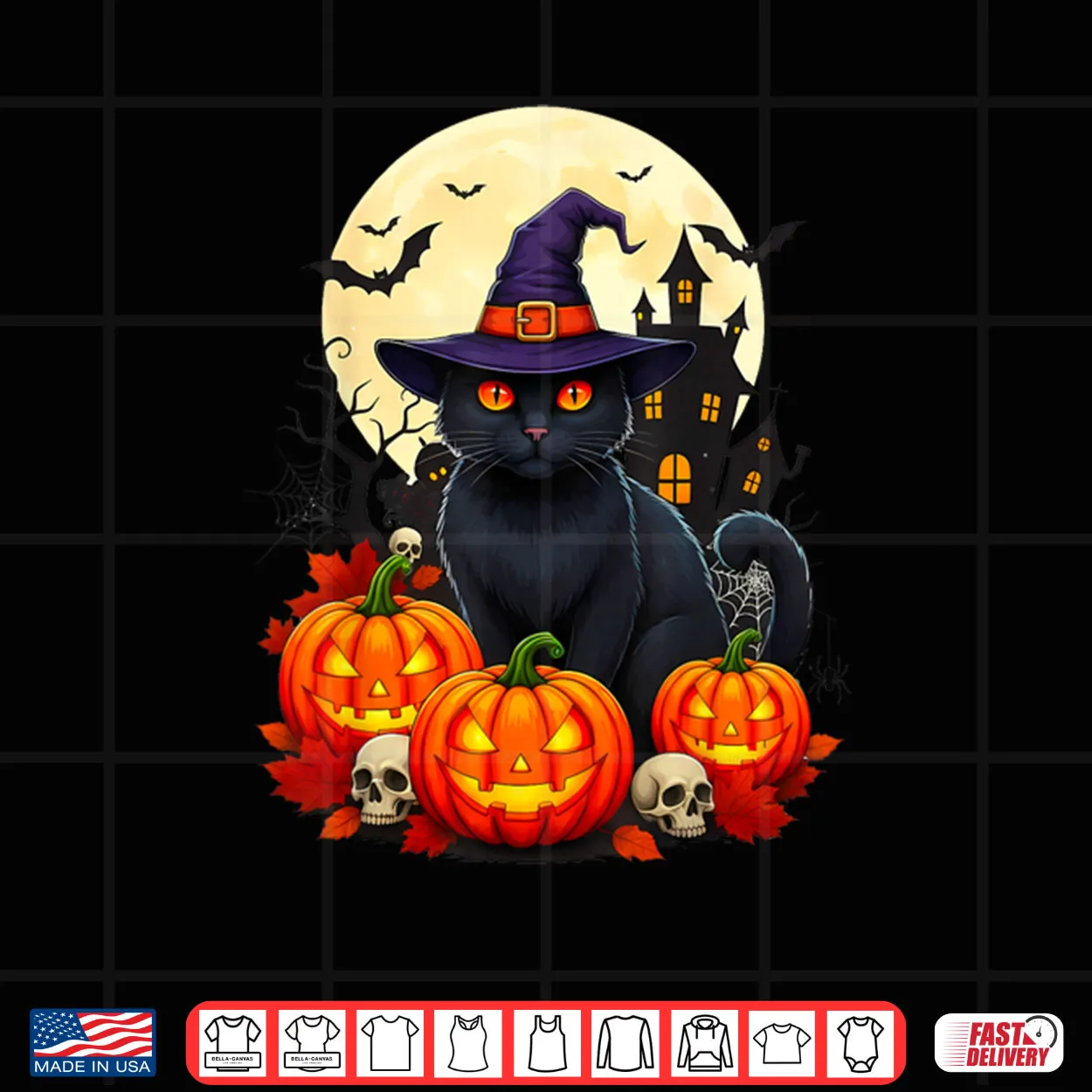 Black Cat Witch Scary Pumpkin Halloween Shirt