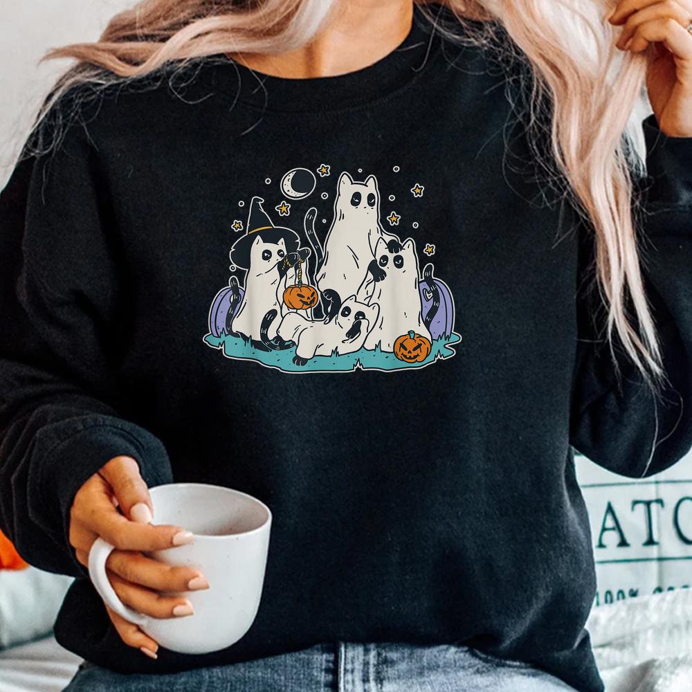 Black Cats In Ghost Halloween Shirt, hoodie, sweatshirt, long sleeve and ladies T-shirt