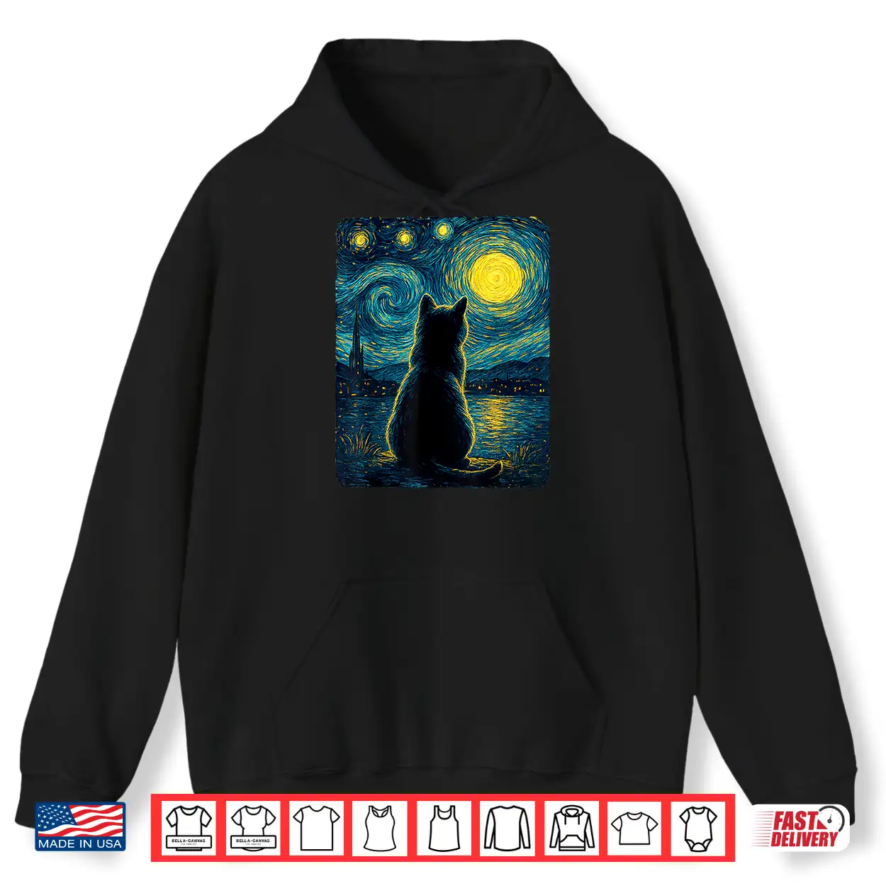 Black Cats Lover Starry Night Vincent Van Gogh Shirt