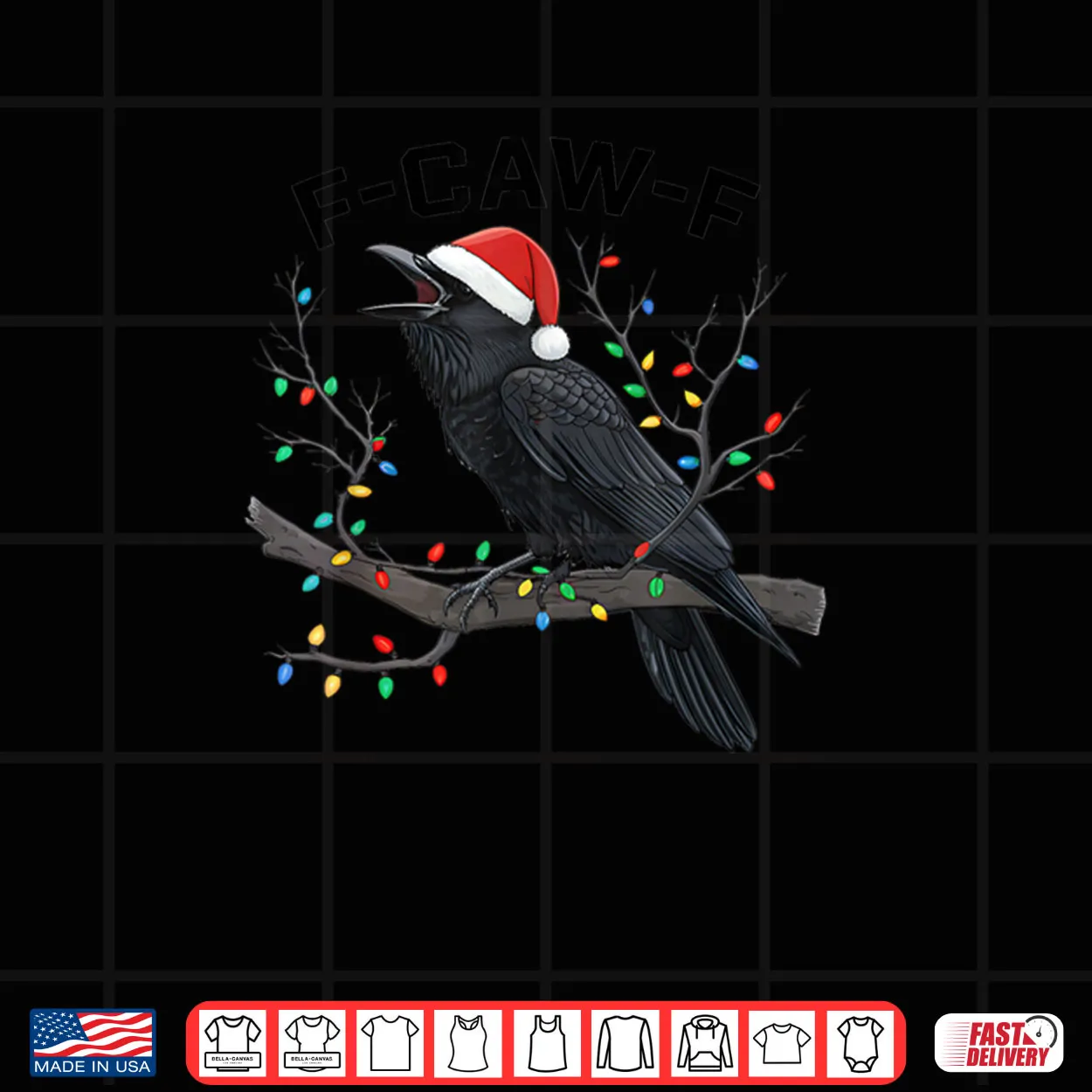 Black Crow F caw f Funny Retro Christmas Lights Santa Hat Shirt