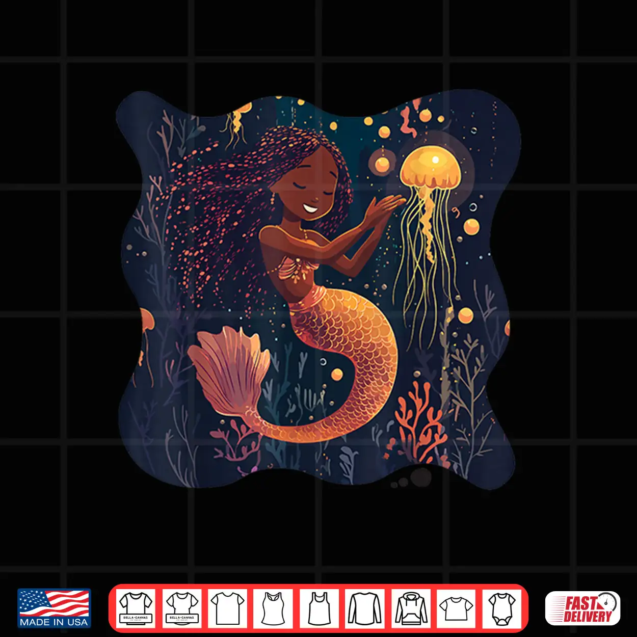 Black Mermaid Braids Girls Kids Toddler Women Birthday Gift Shirt