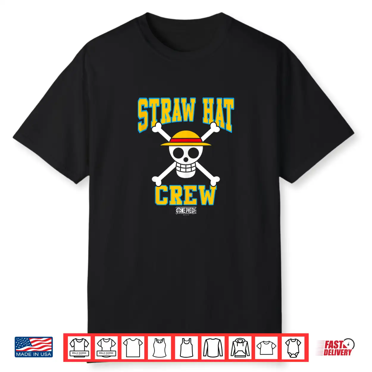 Black-T-Shirt-One Piece Anime Straw Hat Crew Athletic Type Jolly Rogers