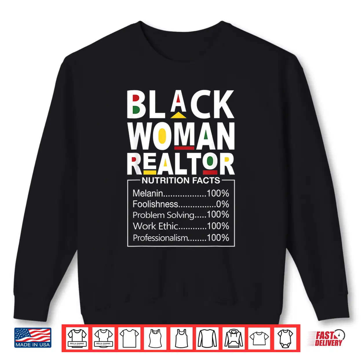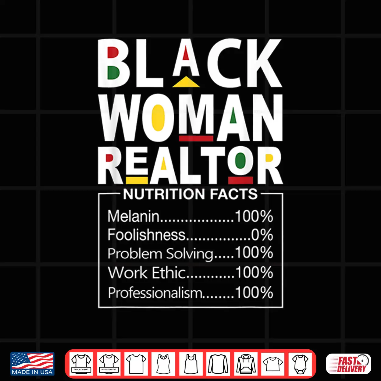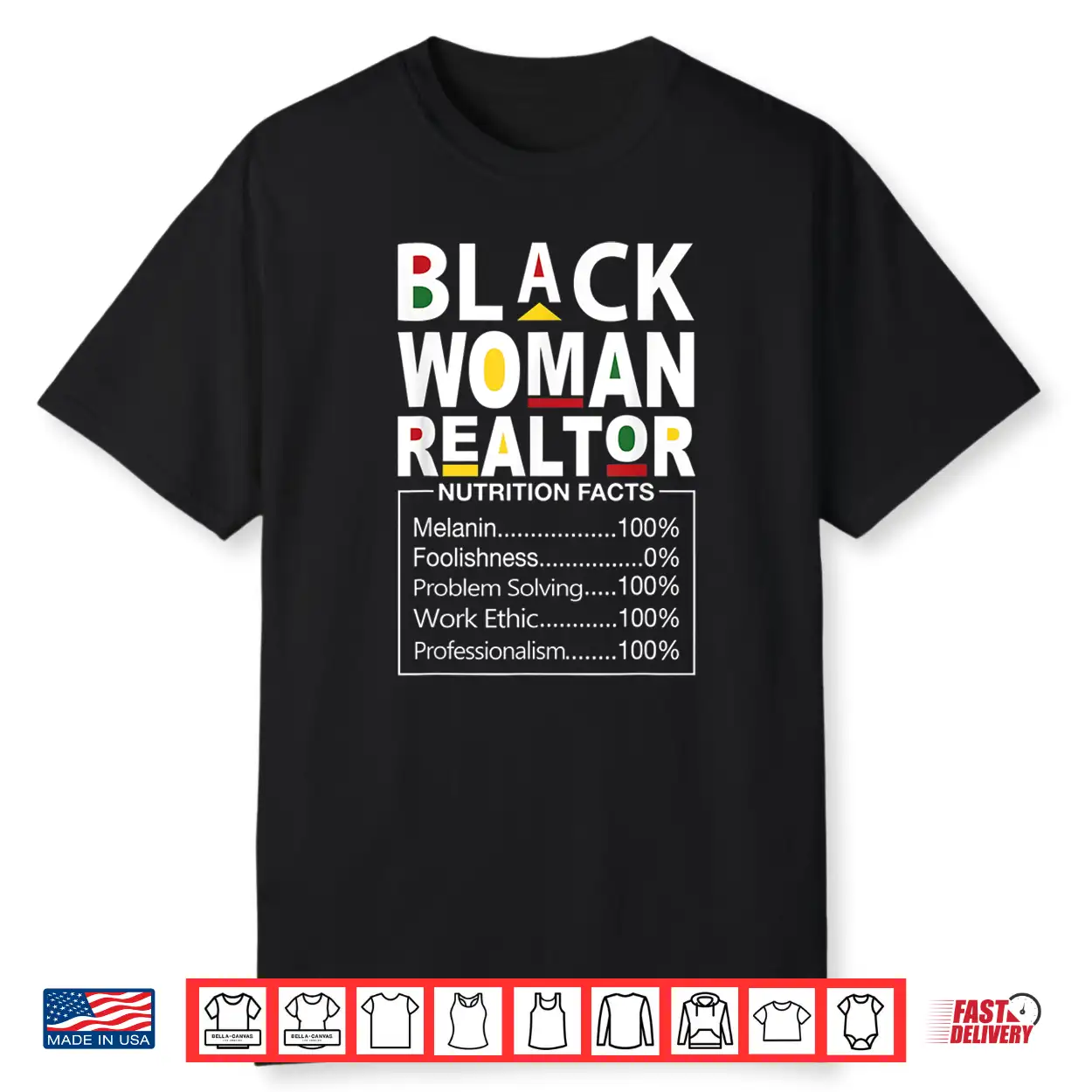 Black Woman Realtor Nutrition Facts Empowerment Graphic Shirt