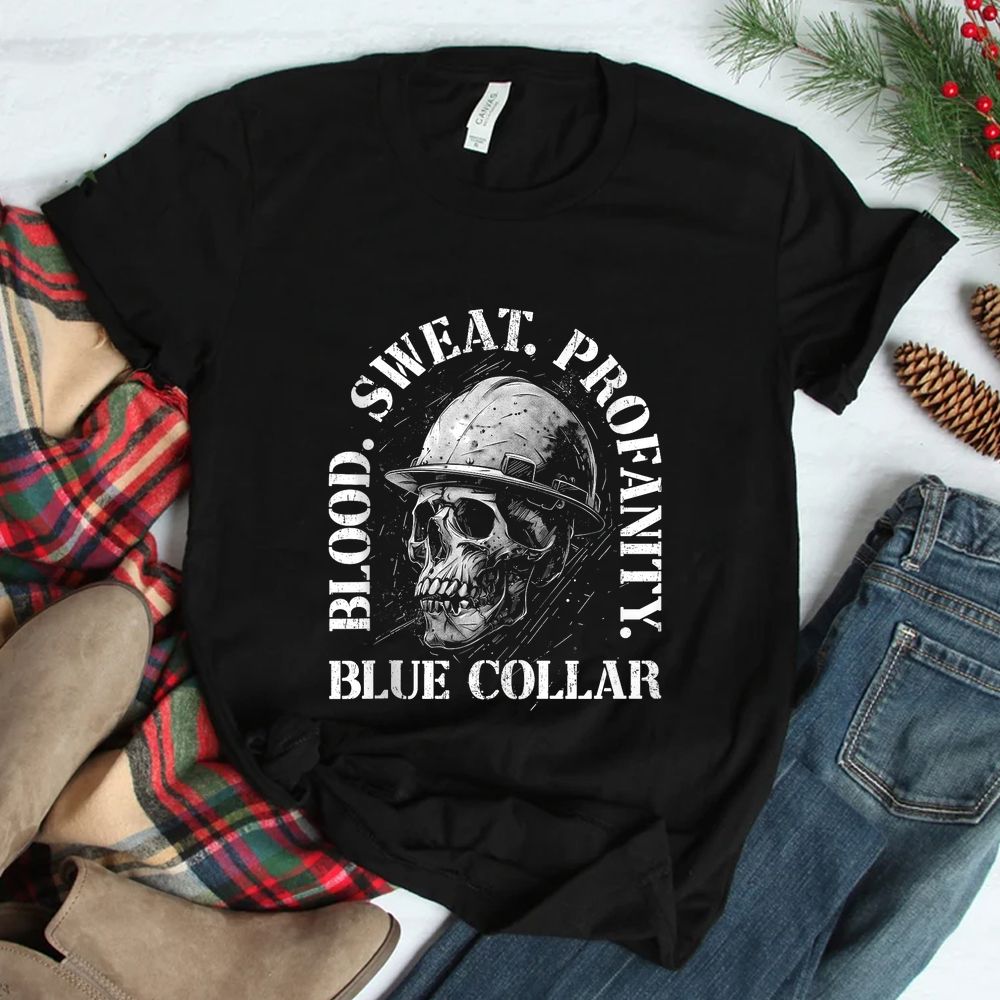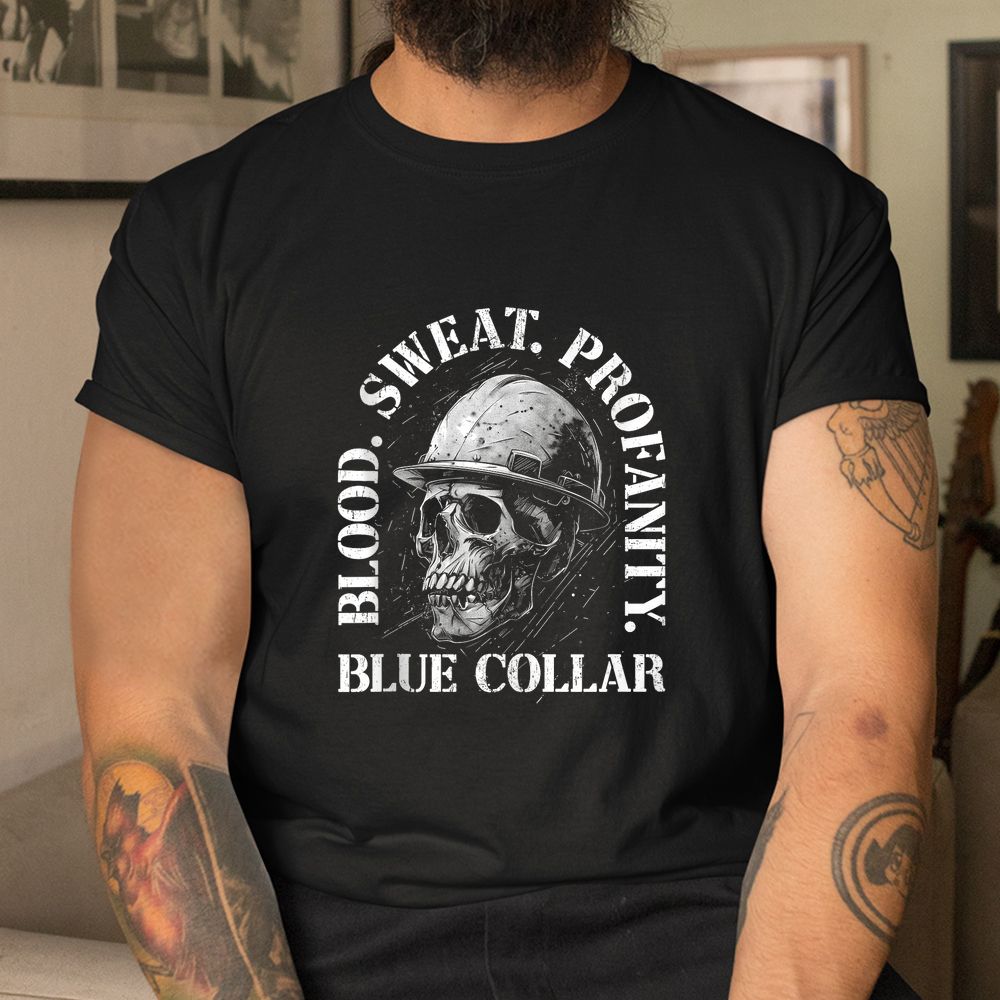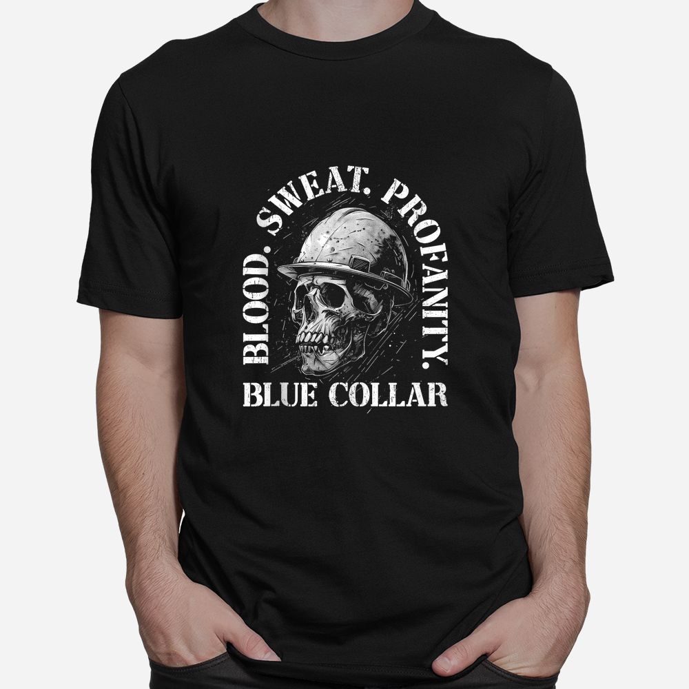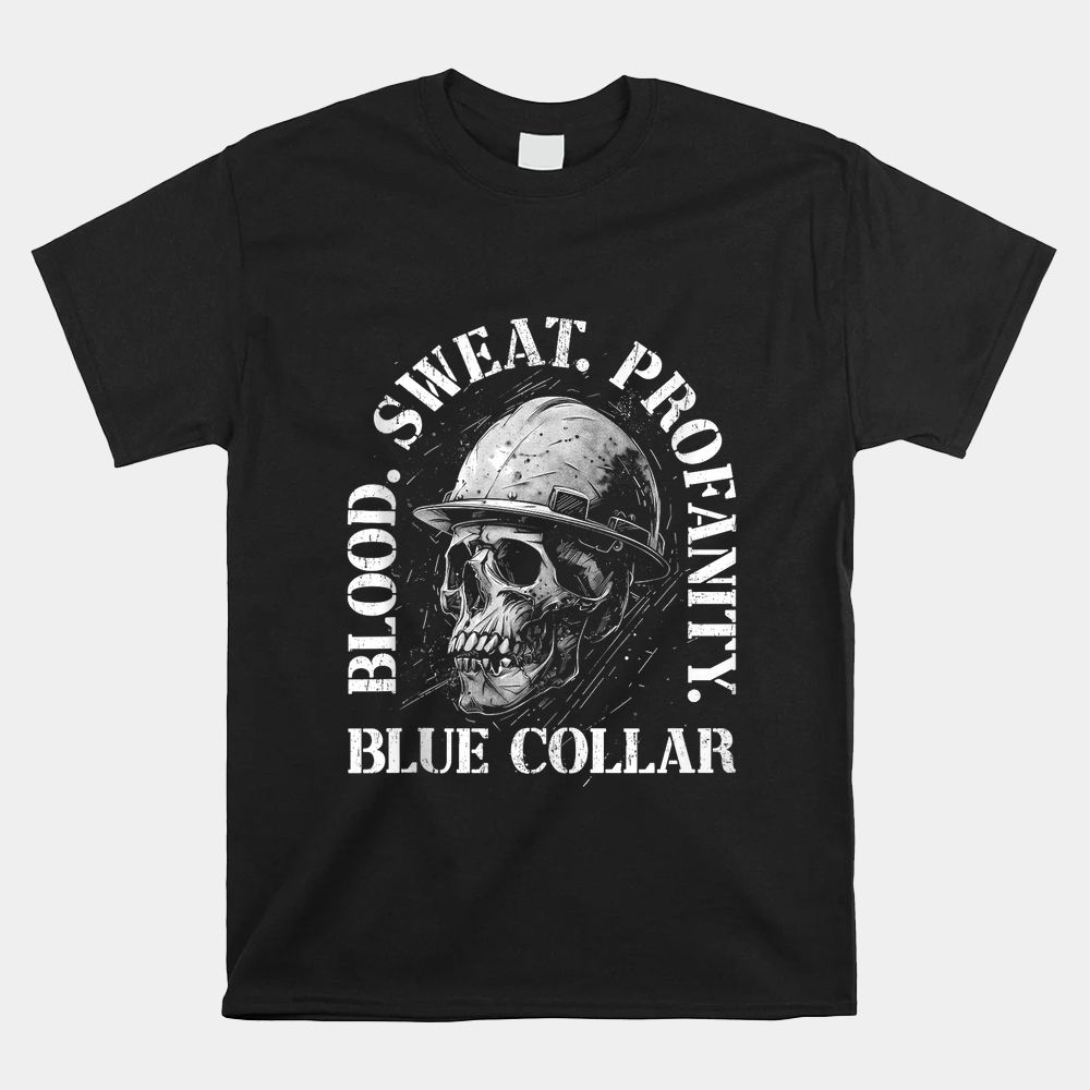 Blood Sweat Profanity Construction Worker Skull Blue Collar Shirt