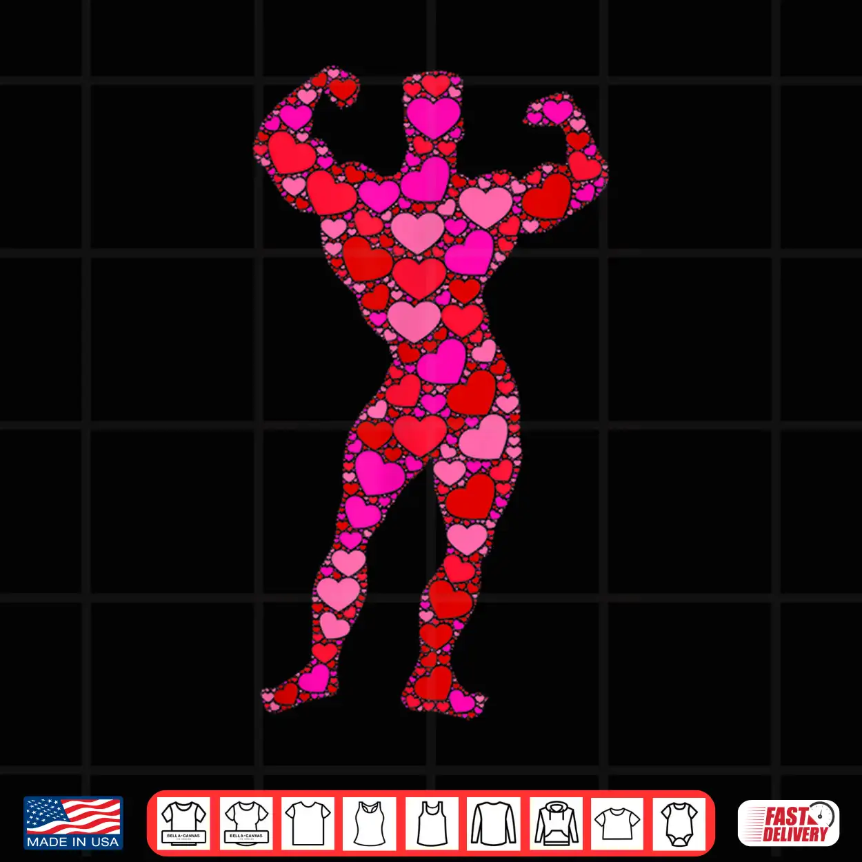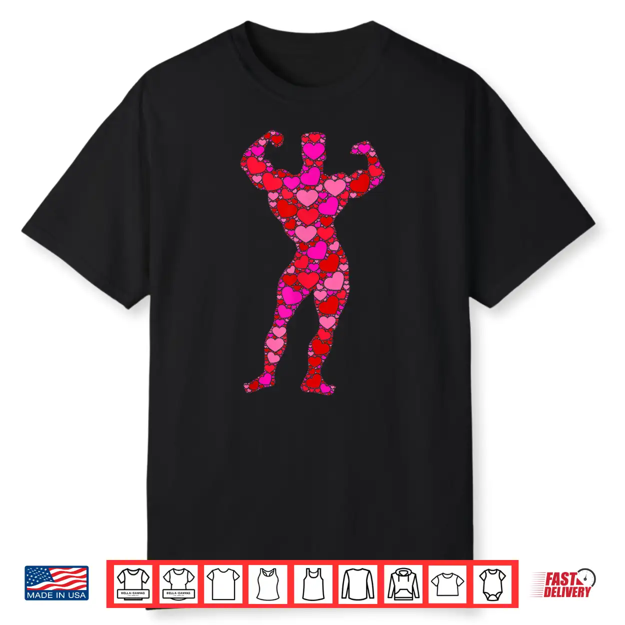 Bodybuilding Pink Red Heart Valentines Day Bodybuilder Shirt