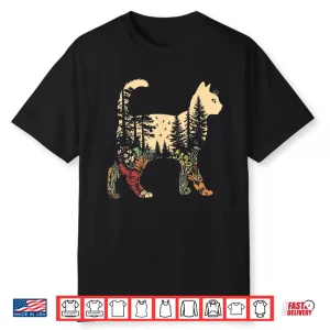 Boho Cat Plants Forest Nature Wildflower Hiking Camping Shirt