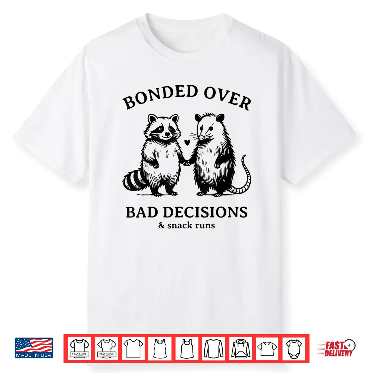 Bonded Over Bad Decisions And Snack Runs Funny Raccoon Shirt