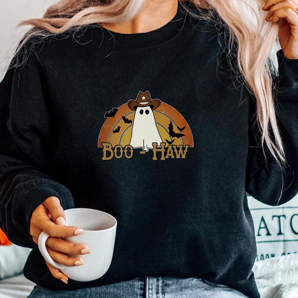 Boo Haw Ghost Cowboy Western Halloween Shirt, hoodie, sweatshirt, long sleeve and ladies T-shirt