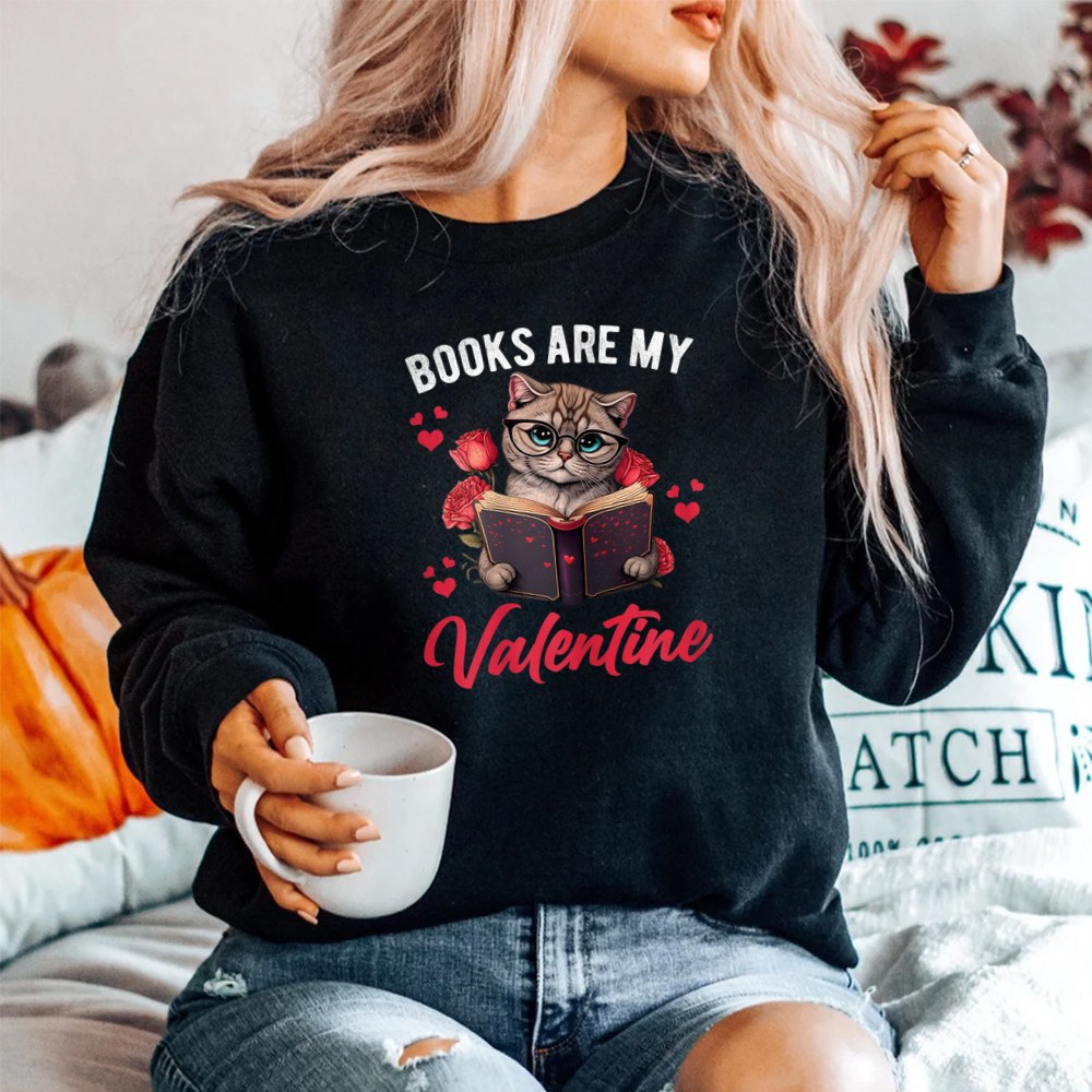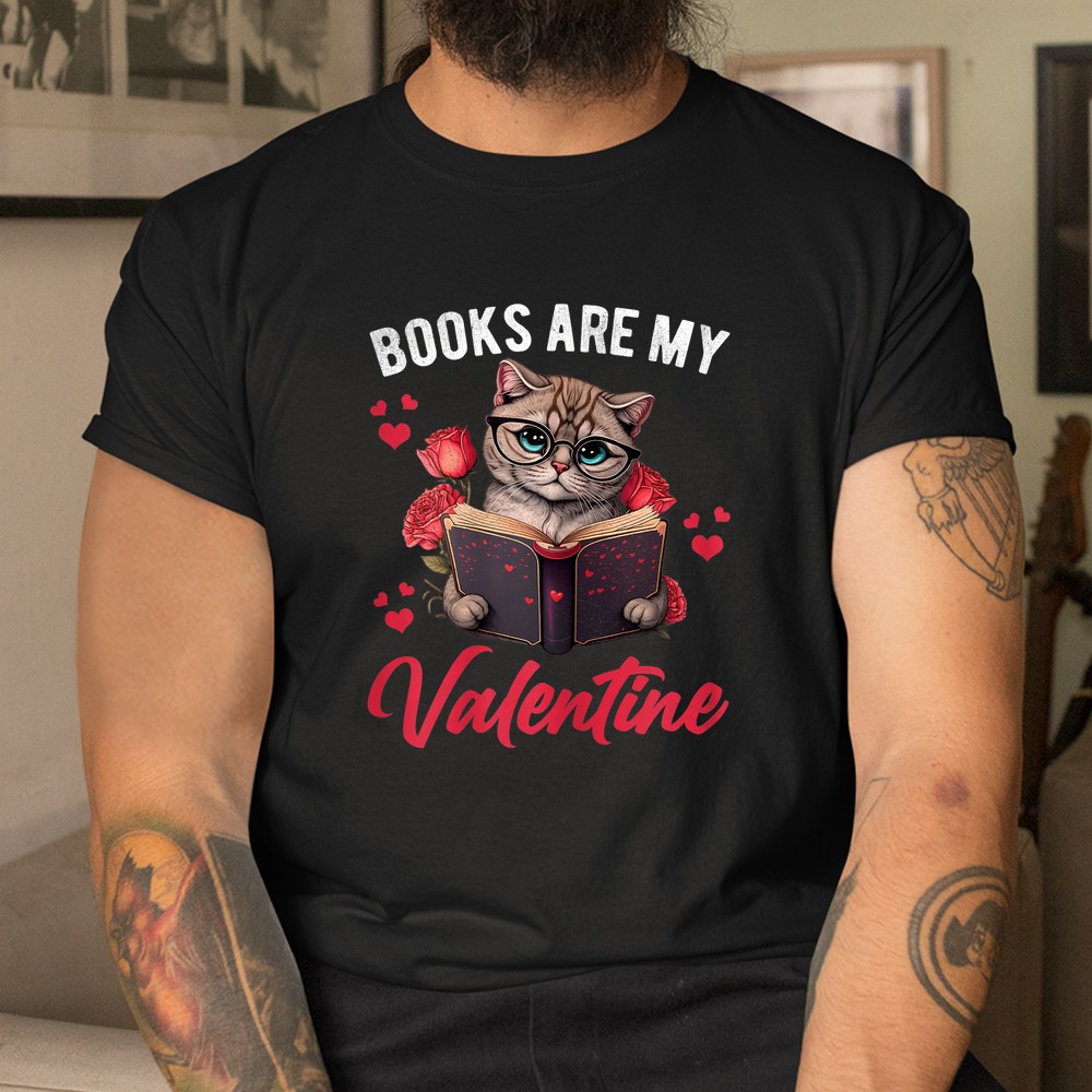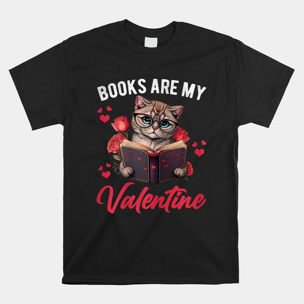 Books Are My Valentine Valentines Day Cat Shirt