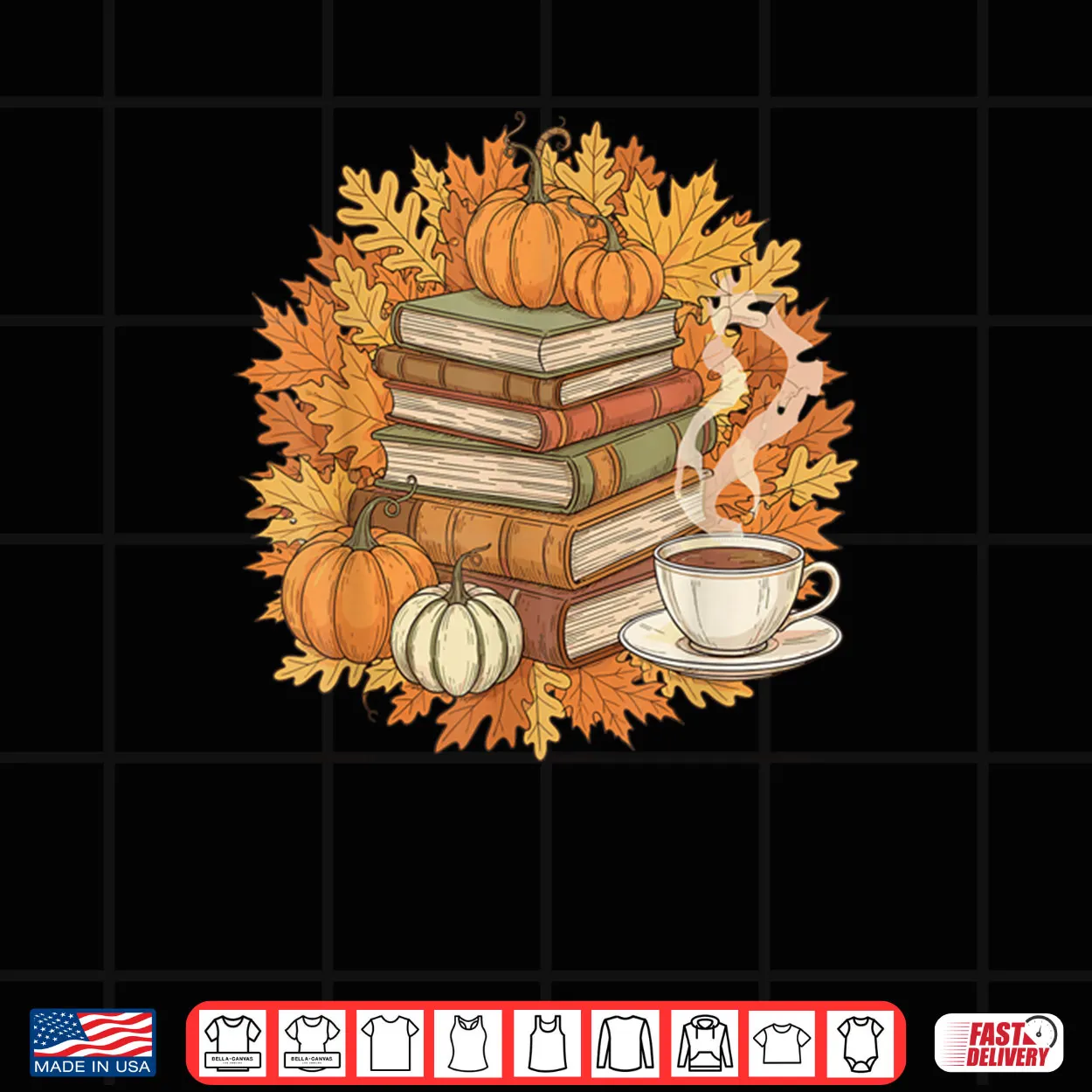Books Coffee Fall Leaves and Pumpkins Vintage Library Shirt