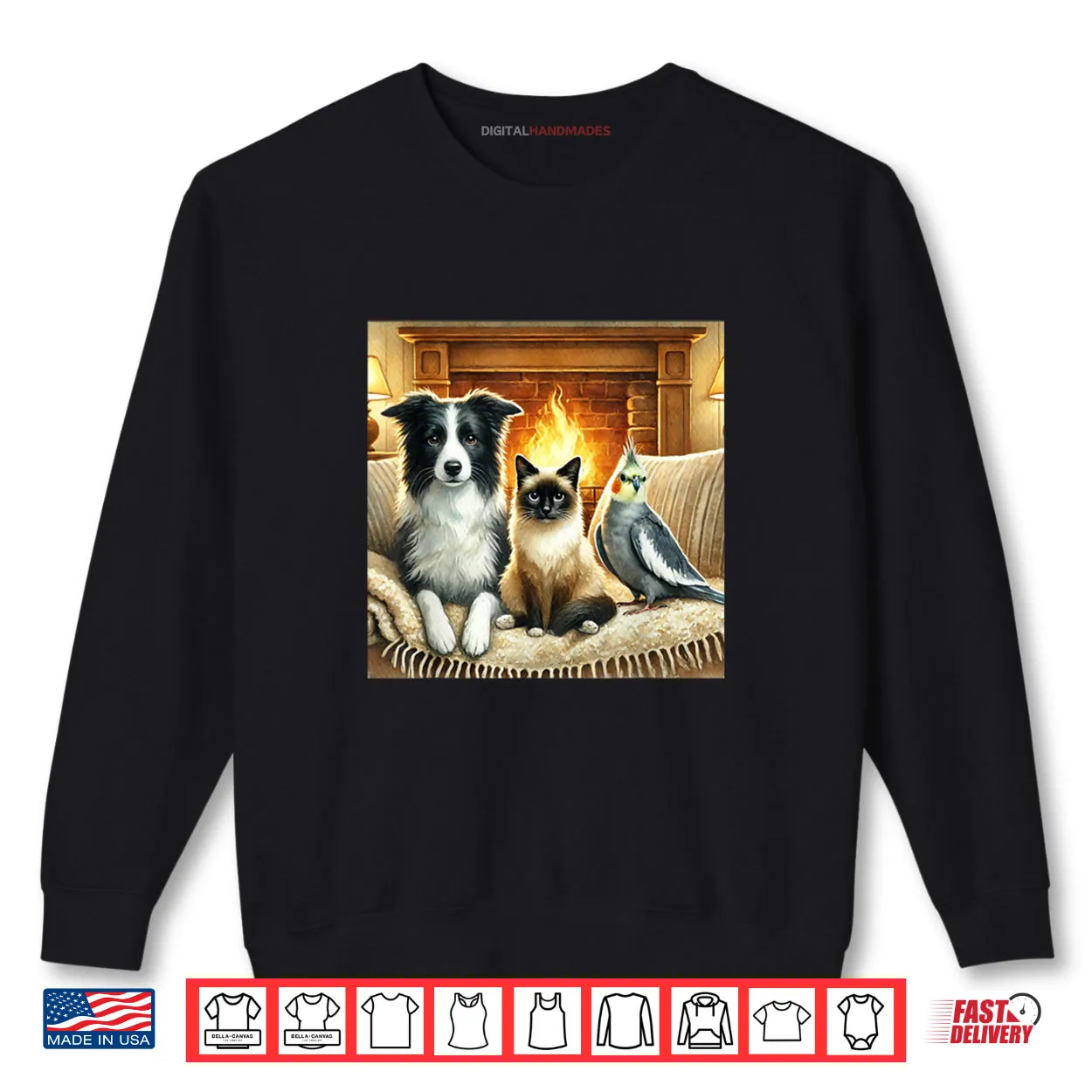 border collie, siamese cat, cockatiel, pet lover, animal friends, dog cat bird, multi pet, cute, feline, shirt