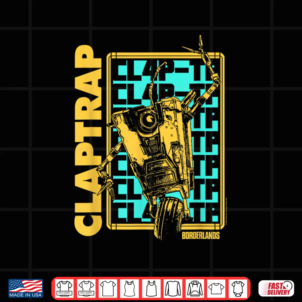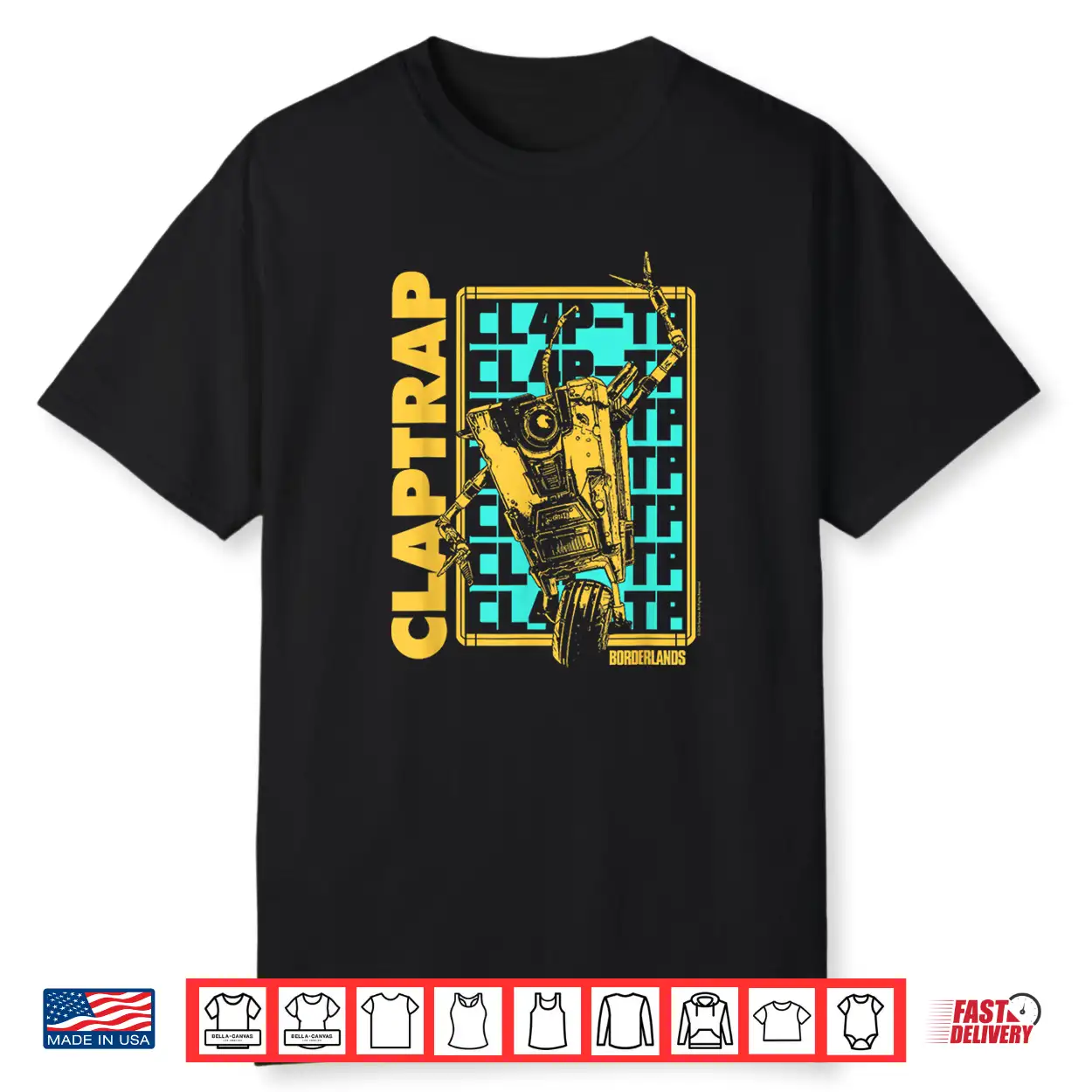 Borderlands Claptrap Repeating Text Video Game Shirt