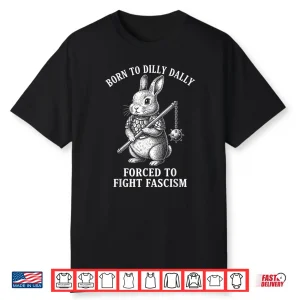 Born To Dilly Dally Forced To Fight Fascism Warrior Rabbit Shirt