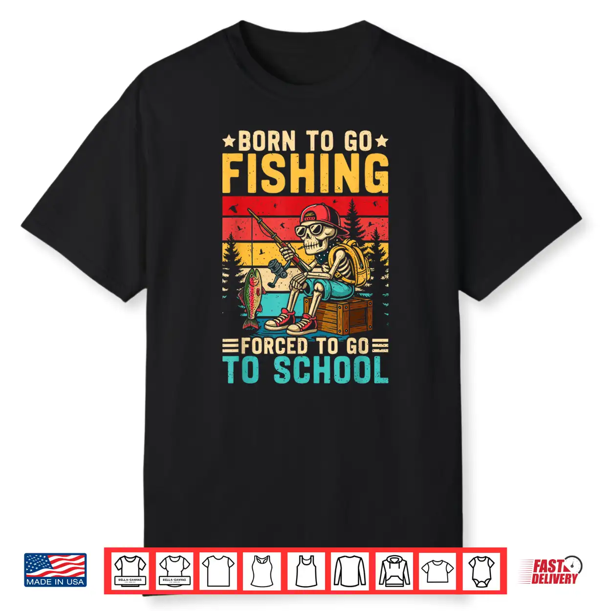 Born To Go Fishing Forced School Funny Boys Kids Men Fishing Shirt