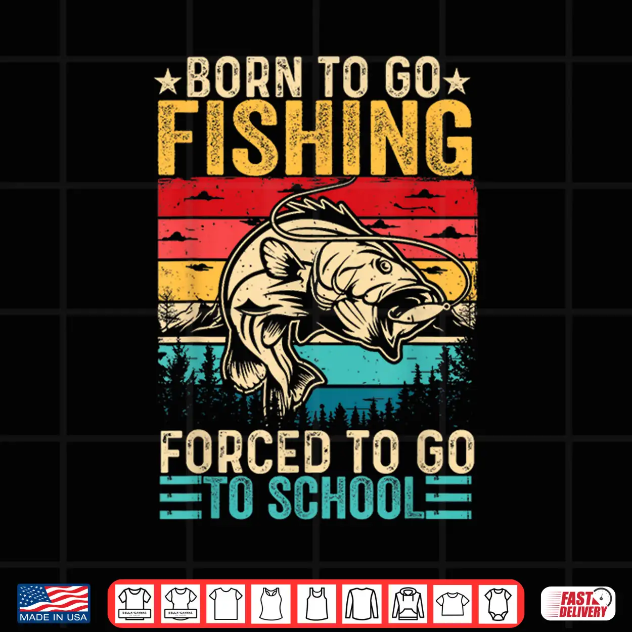 Born To Go Fishing Forced School Funny Men Women Kids Boys Shirt
