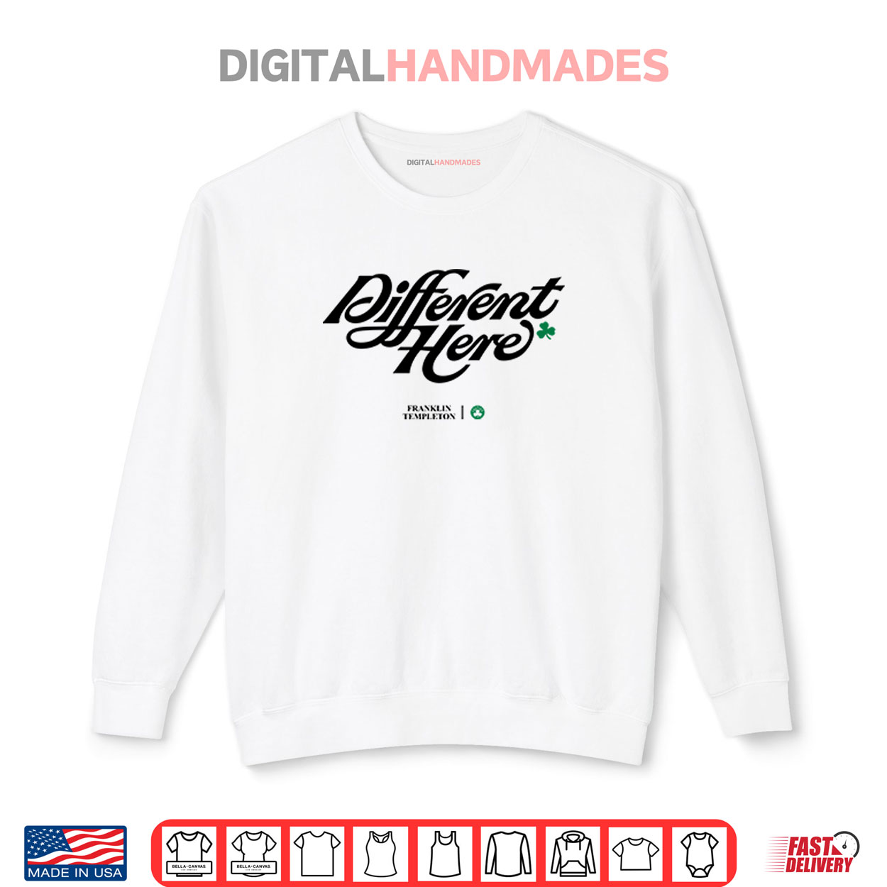 franklin templeton shirt, celtics corporate collab tee, boston business style shirt, nba brand partnership merch, green and gold fanwear, financial firm crossover shirt, celtics professional look shirt, branded nba shirt, official boston collab tee, stylish basketball fan gear