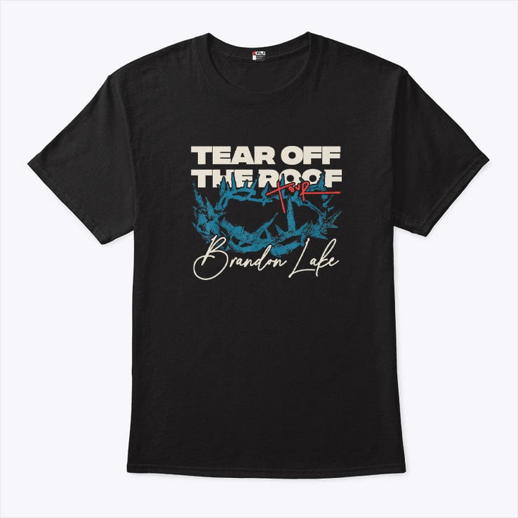 The shirt features the tour’s name and logo, referring to the title of one of Lake’s songs, “Tear Off the Roof”. It is linked with the Christian singer-songwriter Brandon Lake’s upcoming tour in 2024.