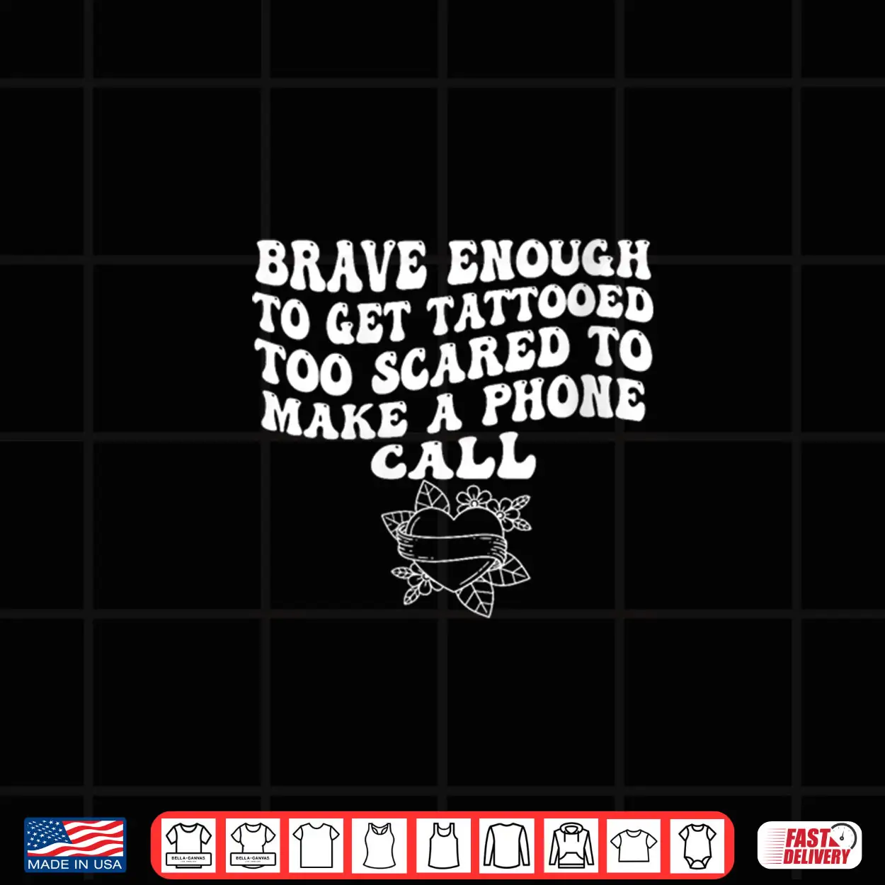 brave enough for tattoos, scared to make phone calls, anxiety humor, introvert, relatable, sarcastic, mental health, quirky, shirt