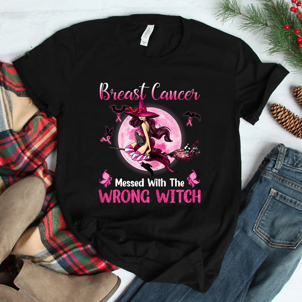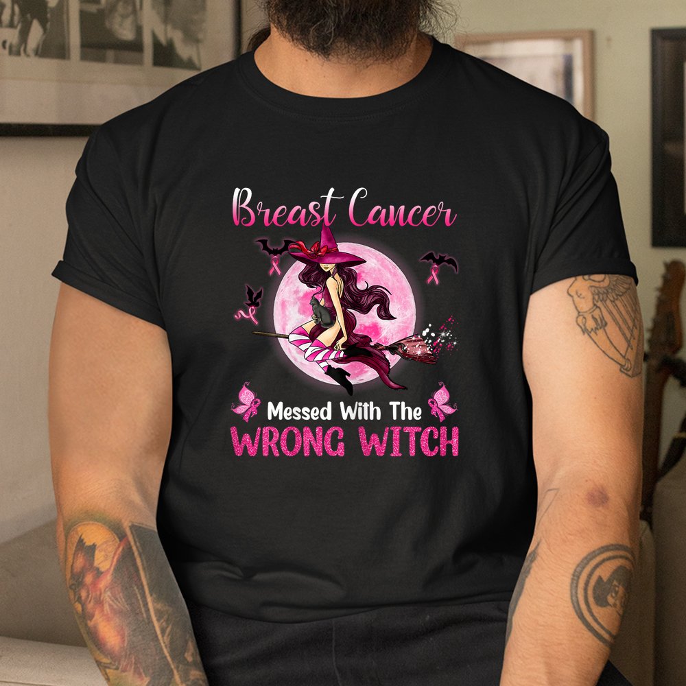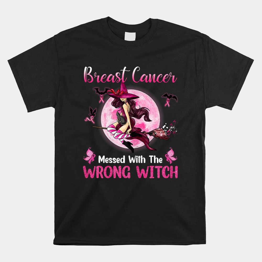Breast Cancer Messed With The Wrong Pink Witch Hat Halloween Shirt