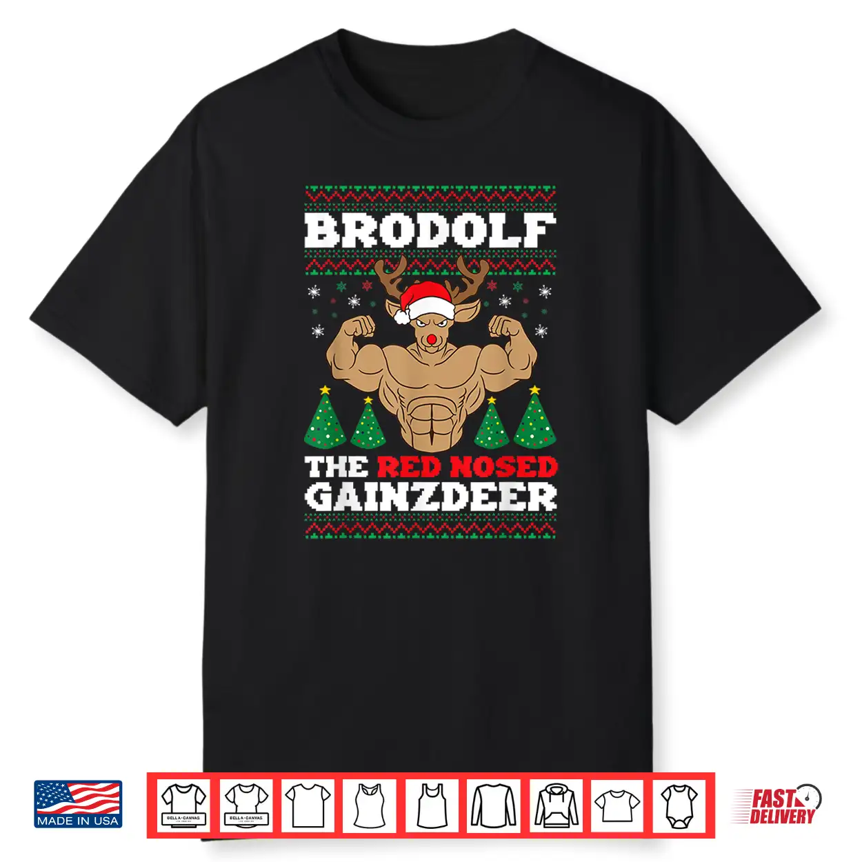 Brodolf Funny Christmas Buff Reindeer Gym Bodybuilding Xmas Shirt