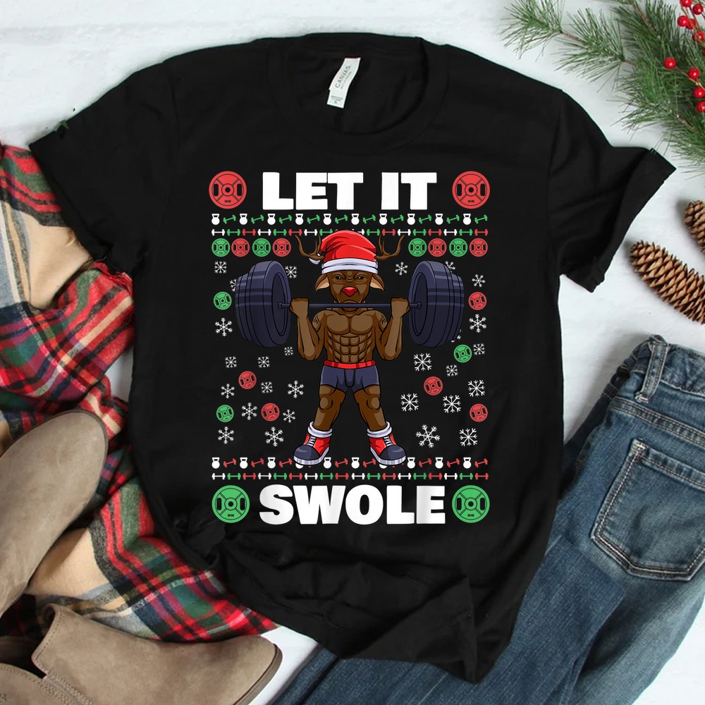 Brodolf Gym Workout Liftmas Ugly Christmas Let It Swole Shirt