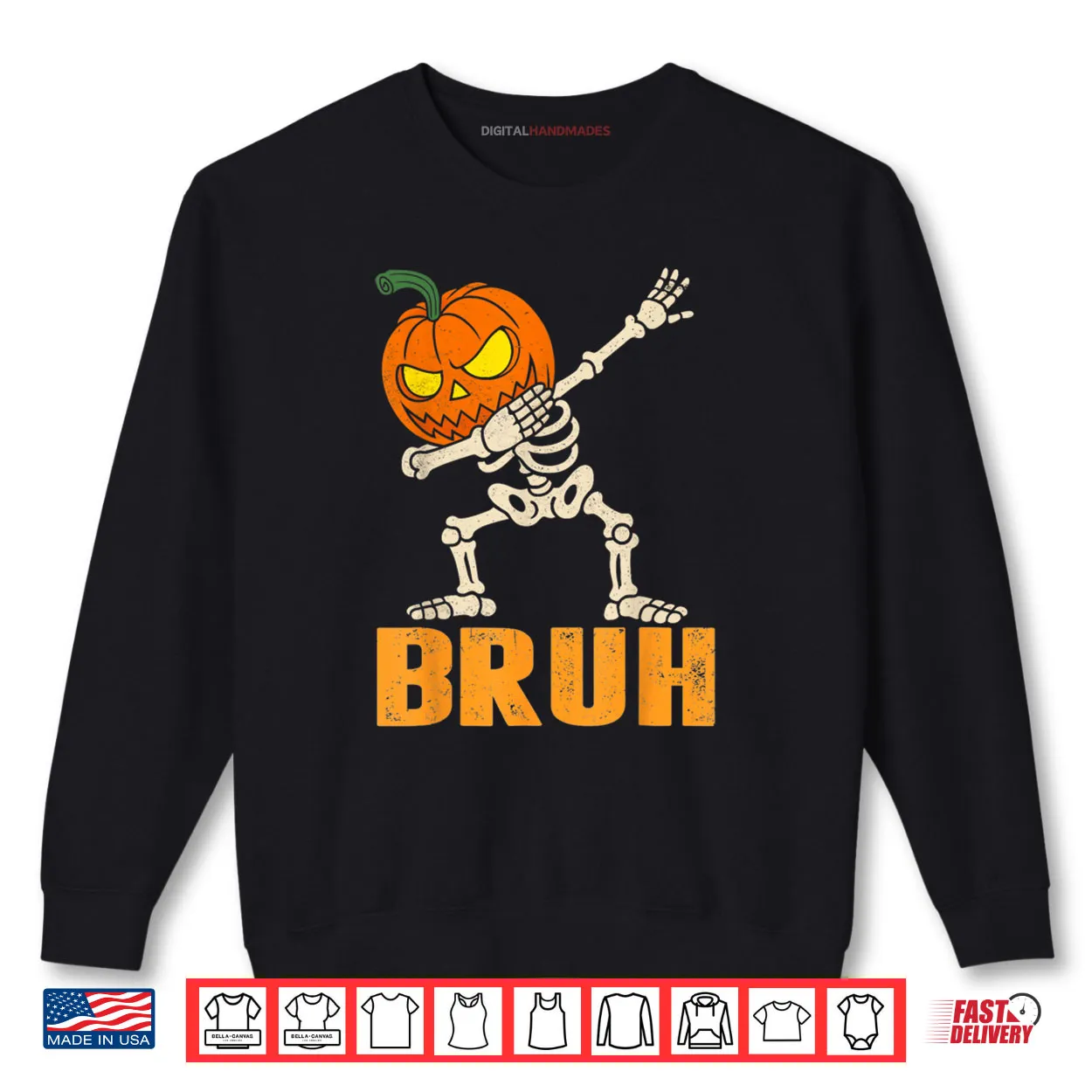 Bruh Skeleton Halloween Dabbing Boys Pumpkin Jack O Lantern Shirt