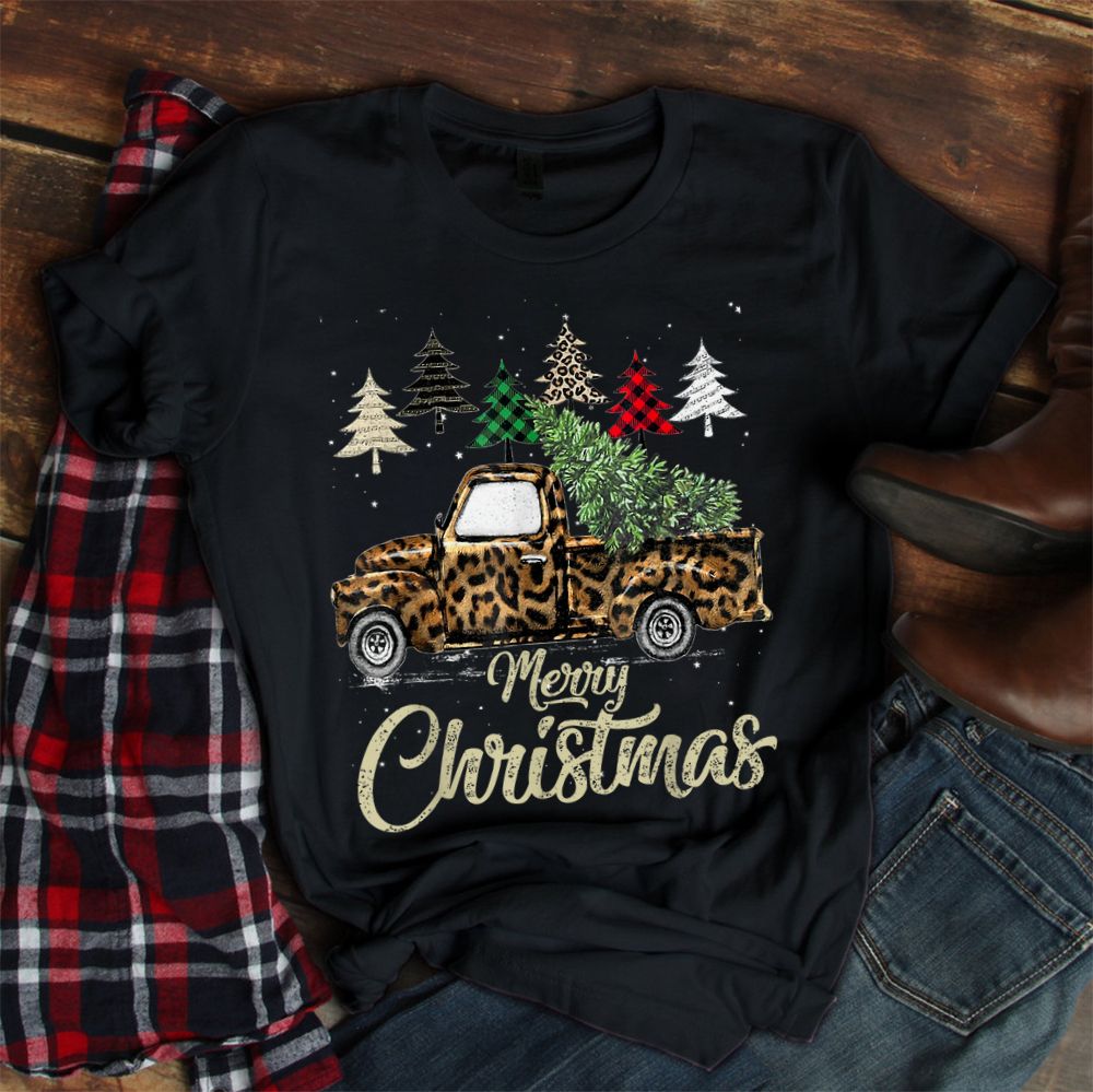 Buffalo Plaid Christmas Tree Red Truck With Leopard Xmas Shirt