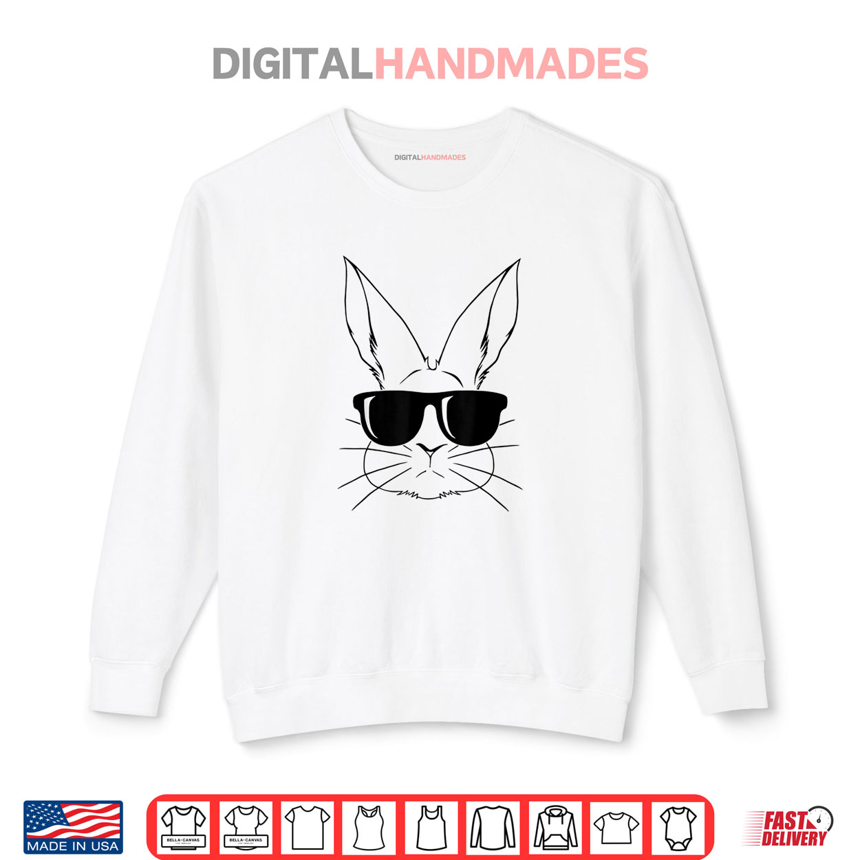 Easter shirt for boys, bunny in shades, kid-friendly holiday tee, cool rabbit design, family Easter outfit, spring event shirt, festive bunny tee, casual kids shirt, boy Easter gift, funny animal tee