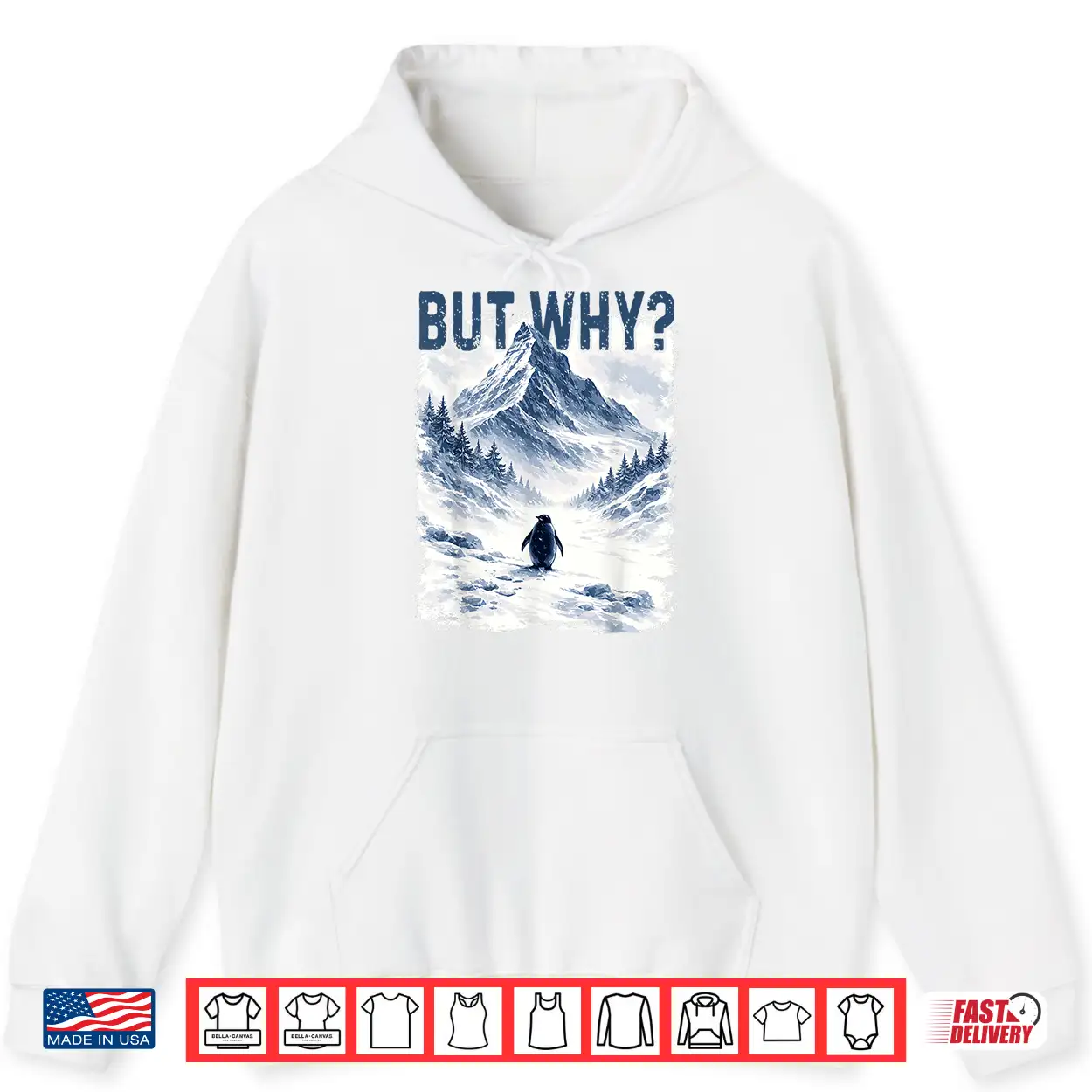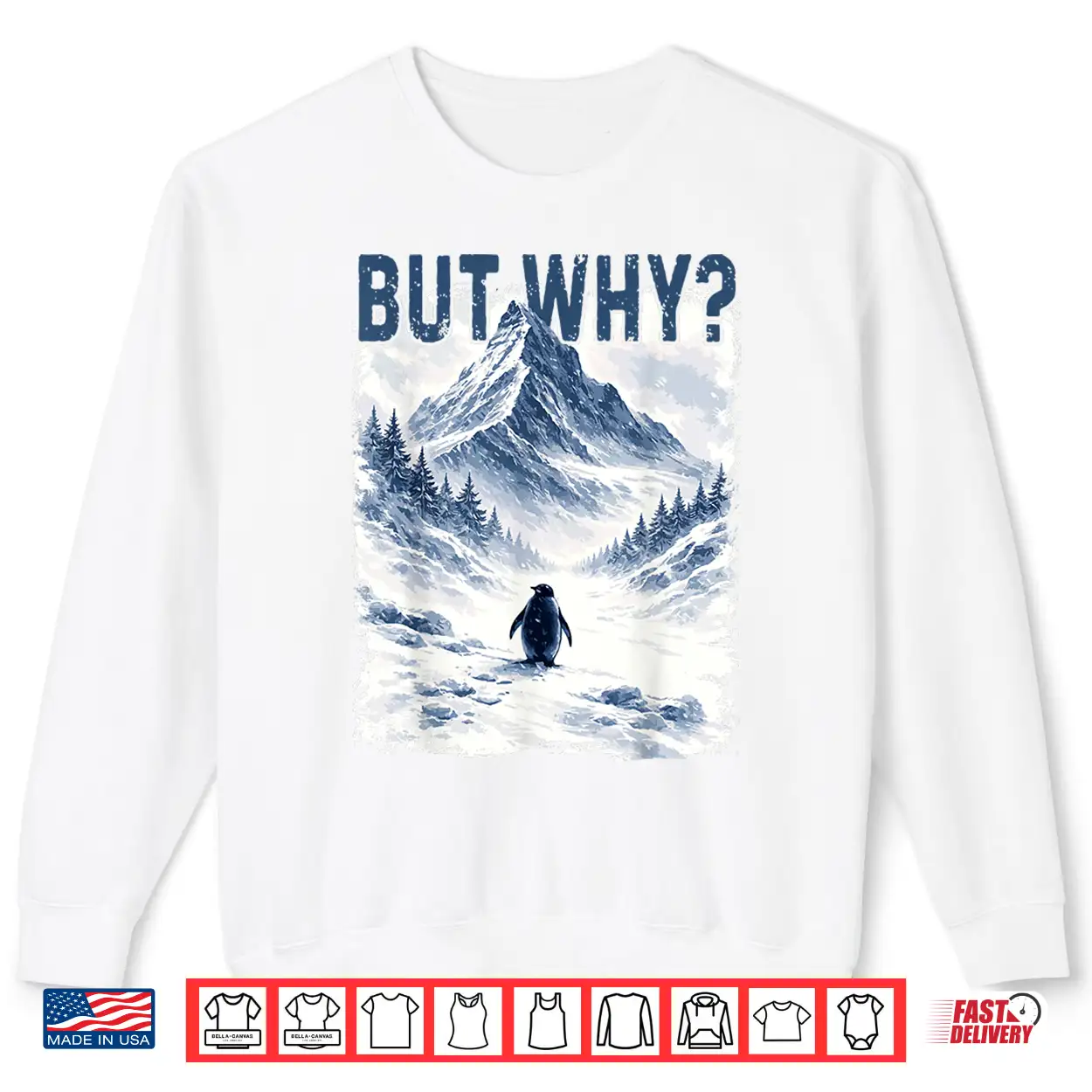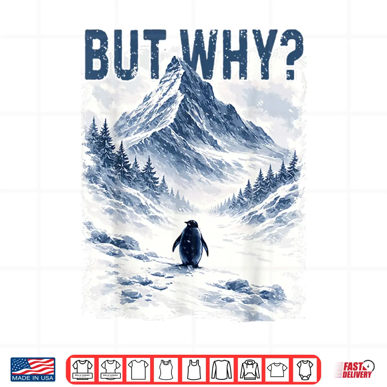 But Why Nihilist Funny Penguin Snowy Mountain Meme Shirt