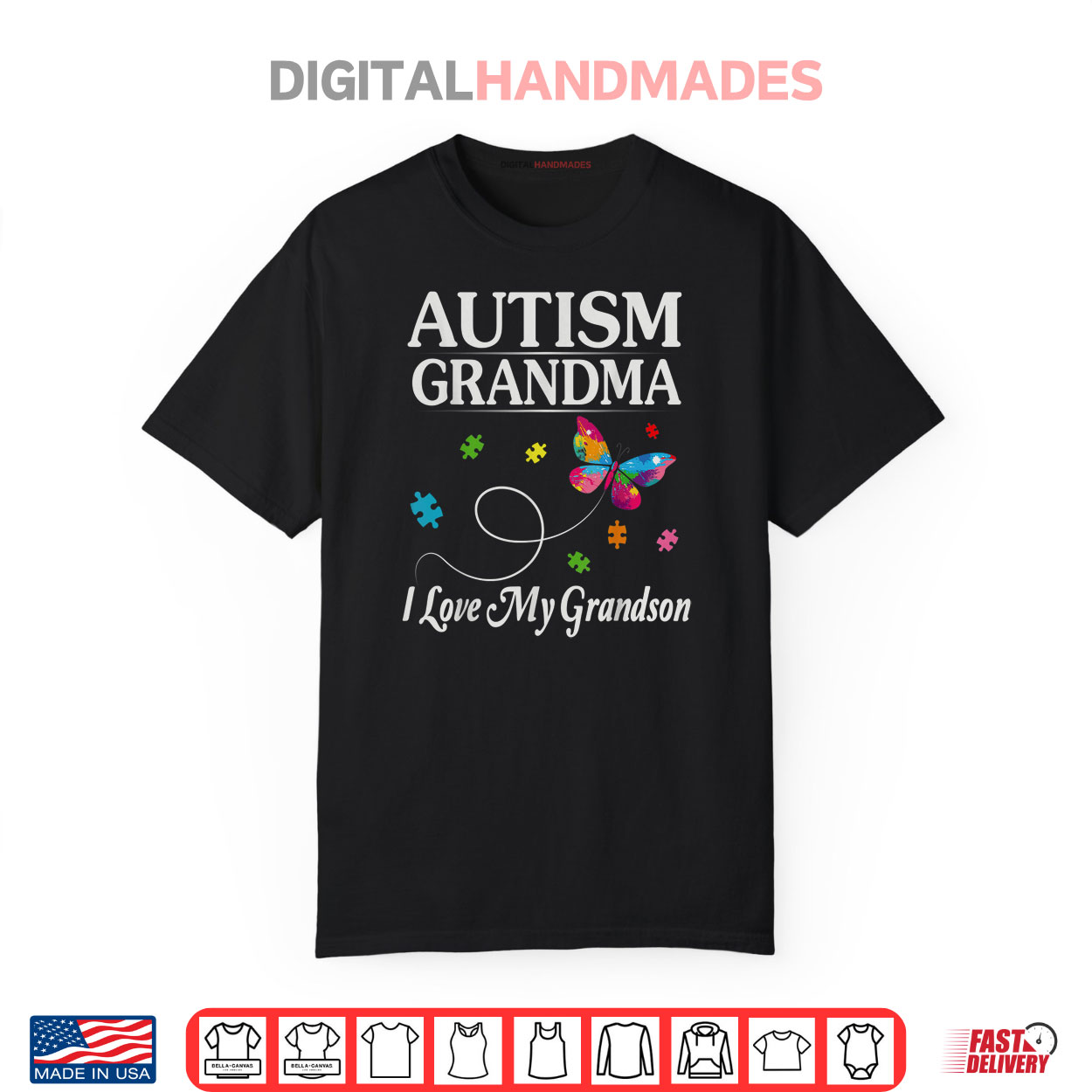 Butterfly Autism Grandma I Love My Grandson Awareness Shirt
