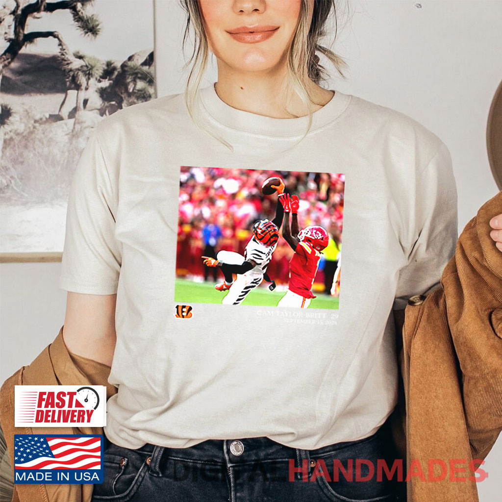 The Cincinnati Bengals are competing in the 2024 NFL season, and fans are keen on supporting rising stars like Taylor-Britt as they face teams like the Dallas Cowboys. This shirt allows fans to proudly support both Cam Taylor-Britt and the Cincinnati Bengals during the season.