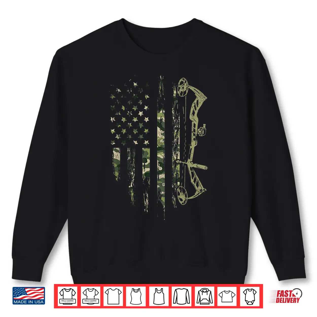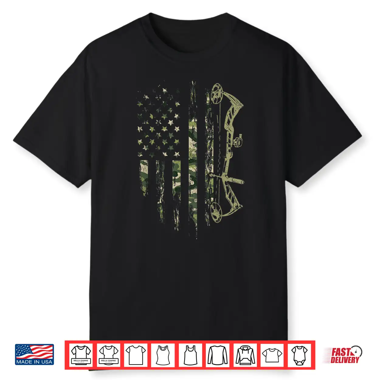 Camo American Flag Bowhunting Bow Archery Deer Hunting Gift Shirt