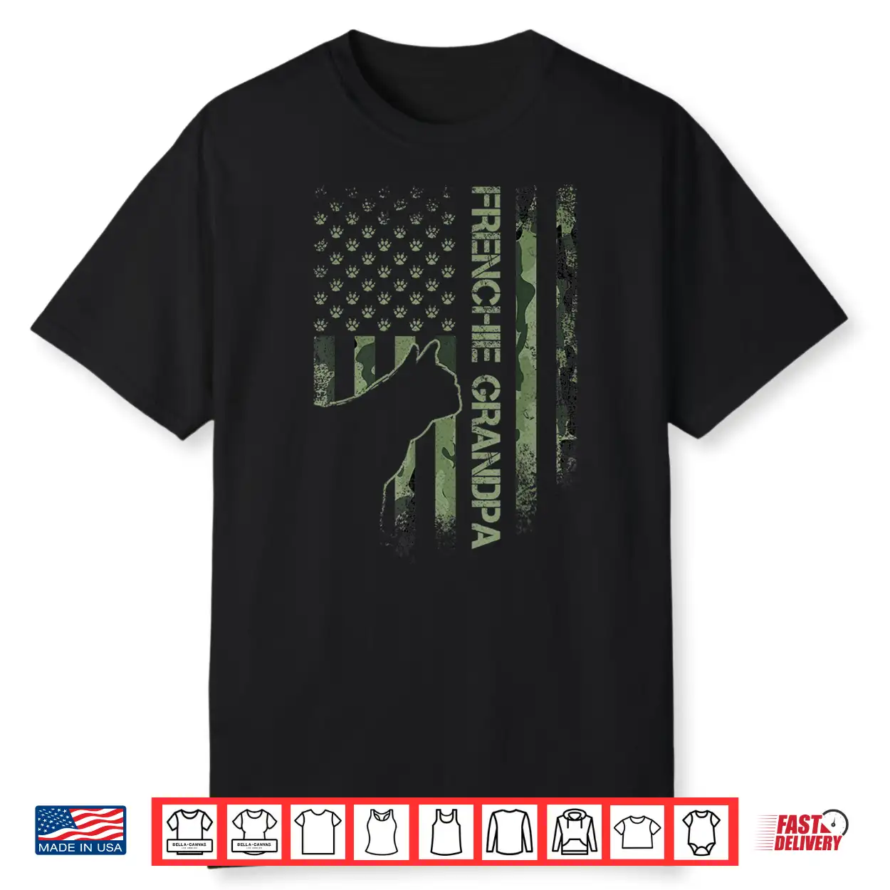 Camo Flag Proud French Bulldog Grandpa Frenchie Silhouette Shirt