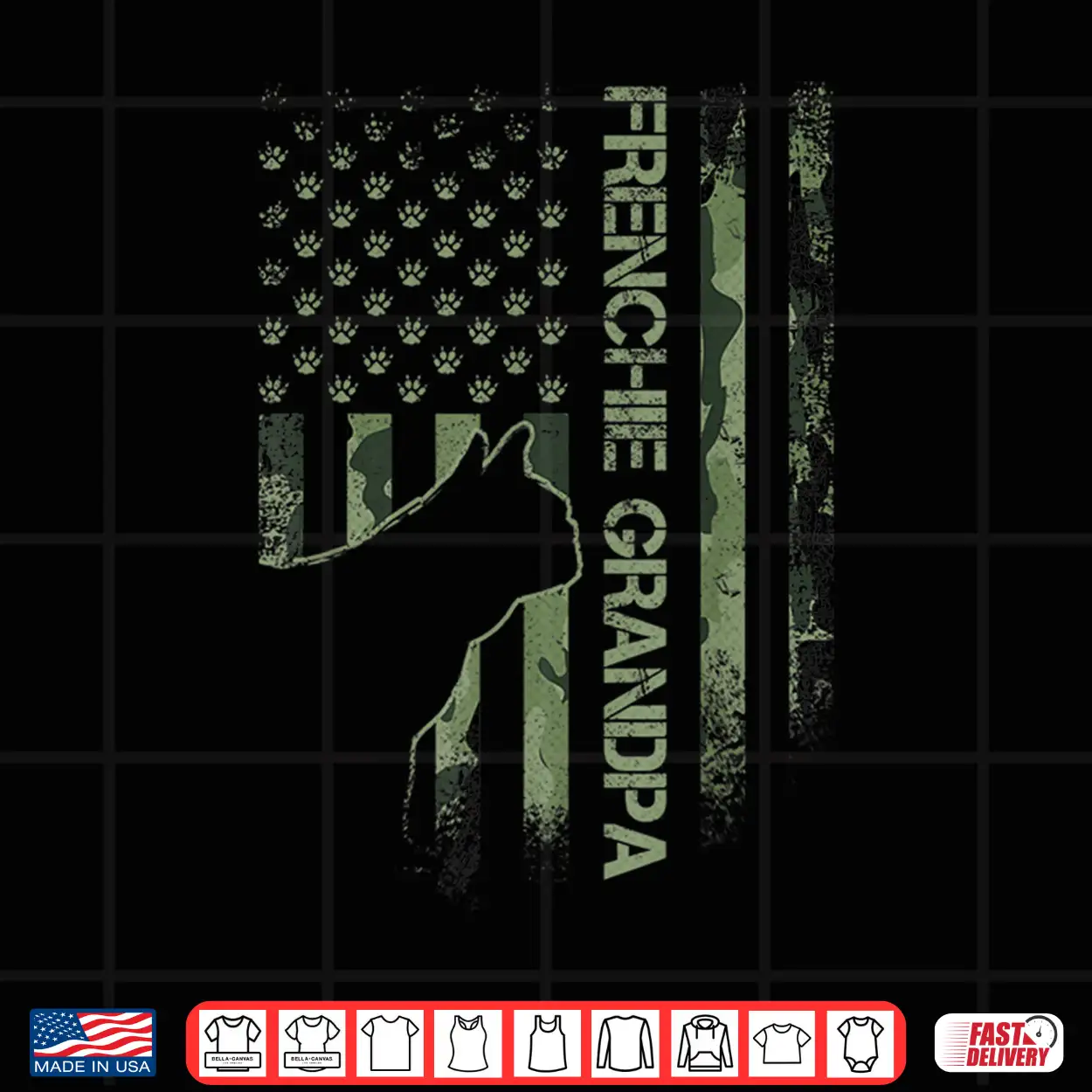 Camo Flag Frenchie Pop Proud Grandpa Dog Silhouette Patriot Soul Military Vibe Grandparent USA Pride Pet Parent Dog Lover