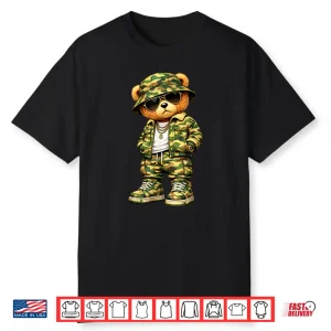 Camo Hip Hop Teddy Bear Camouflage Gangsta Cool Streetwear Shirt