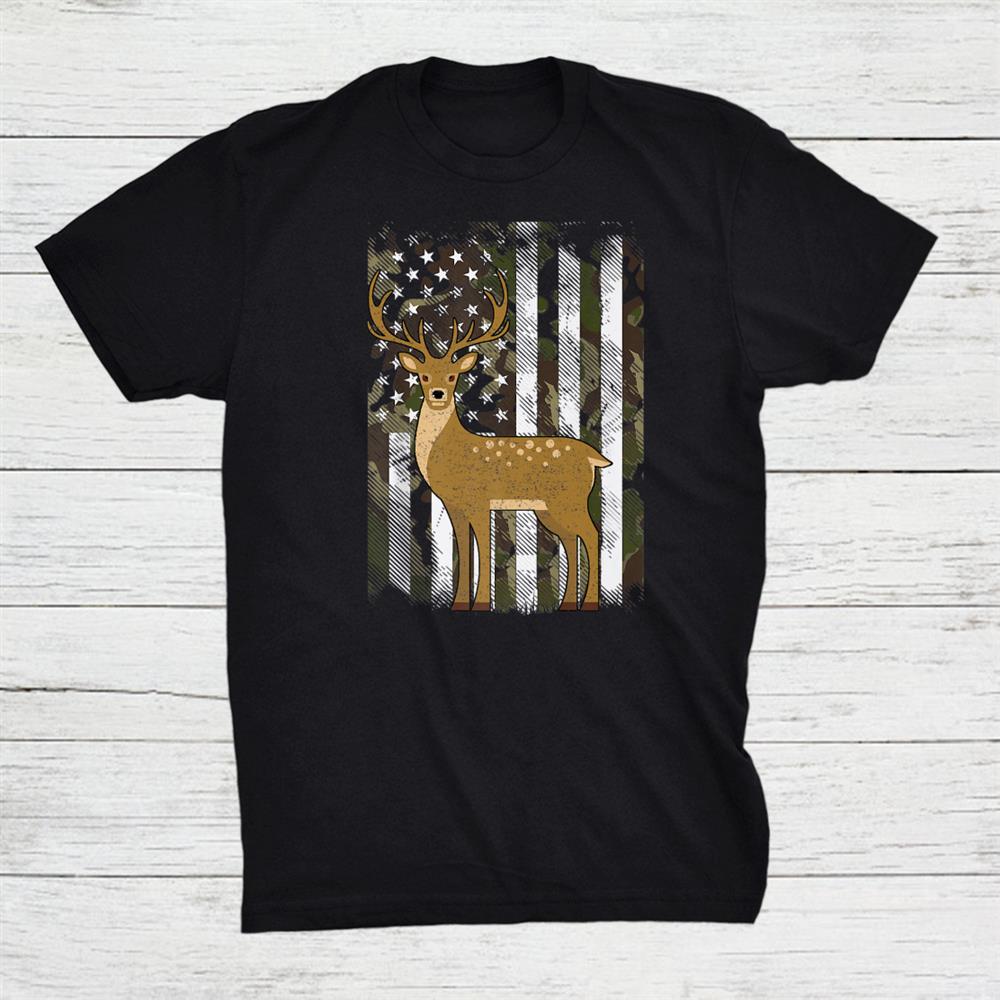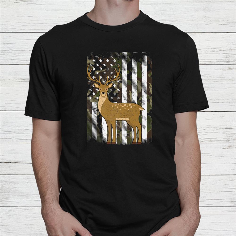 Camo Us Flag Deer Elk Buck Camoflage Hunting Shirt
