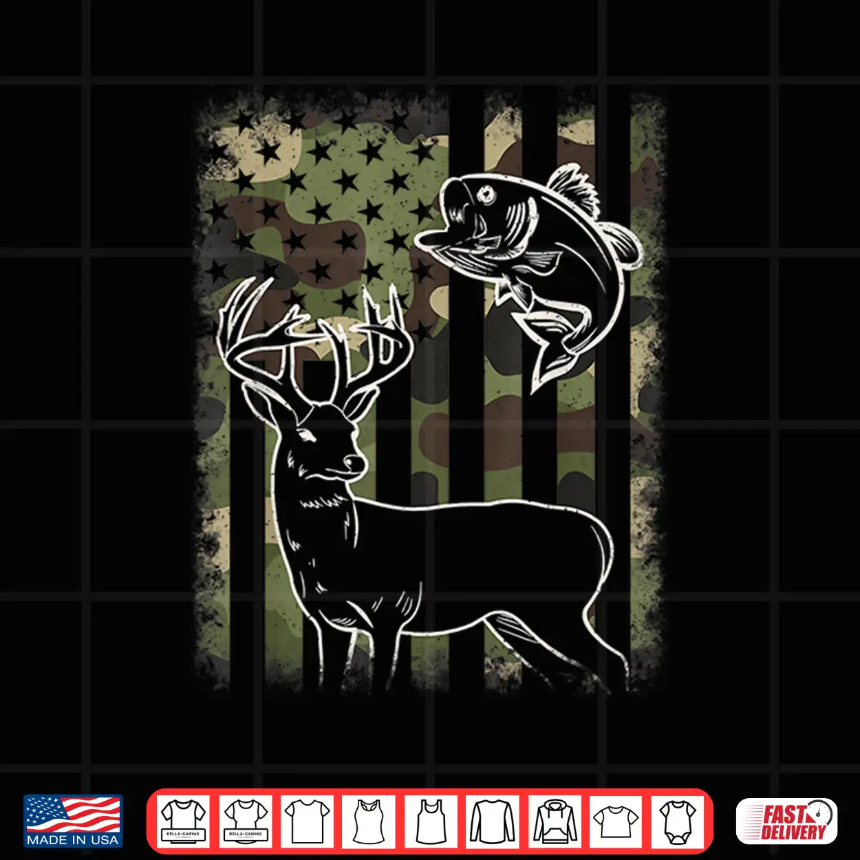 Camouflage American Flag Fishing Hunting Hunter Deer Fish Shirt
