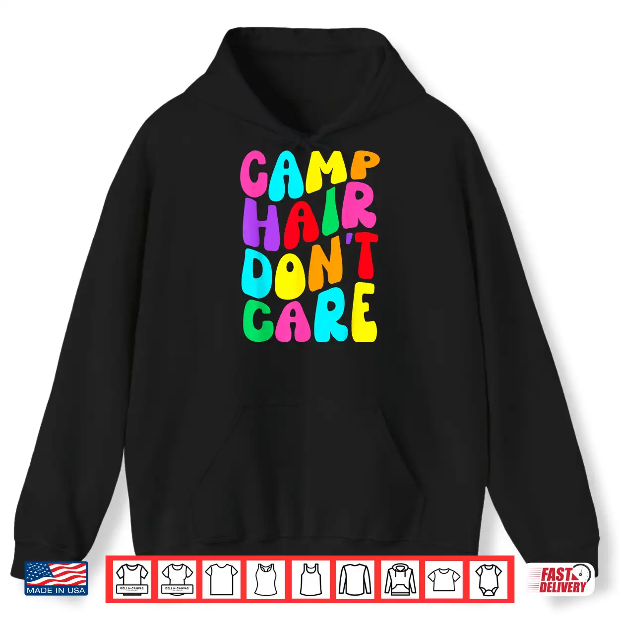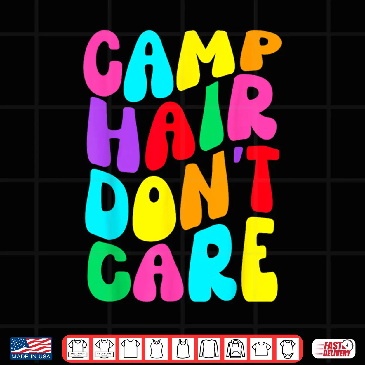 Camp Hair Don’T Care Girls Summer Camping Rainbow Groovy Shirt